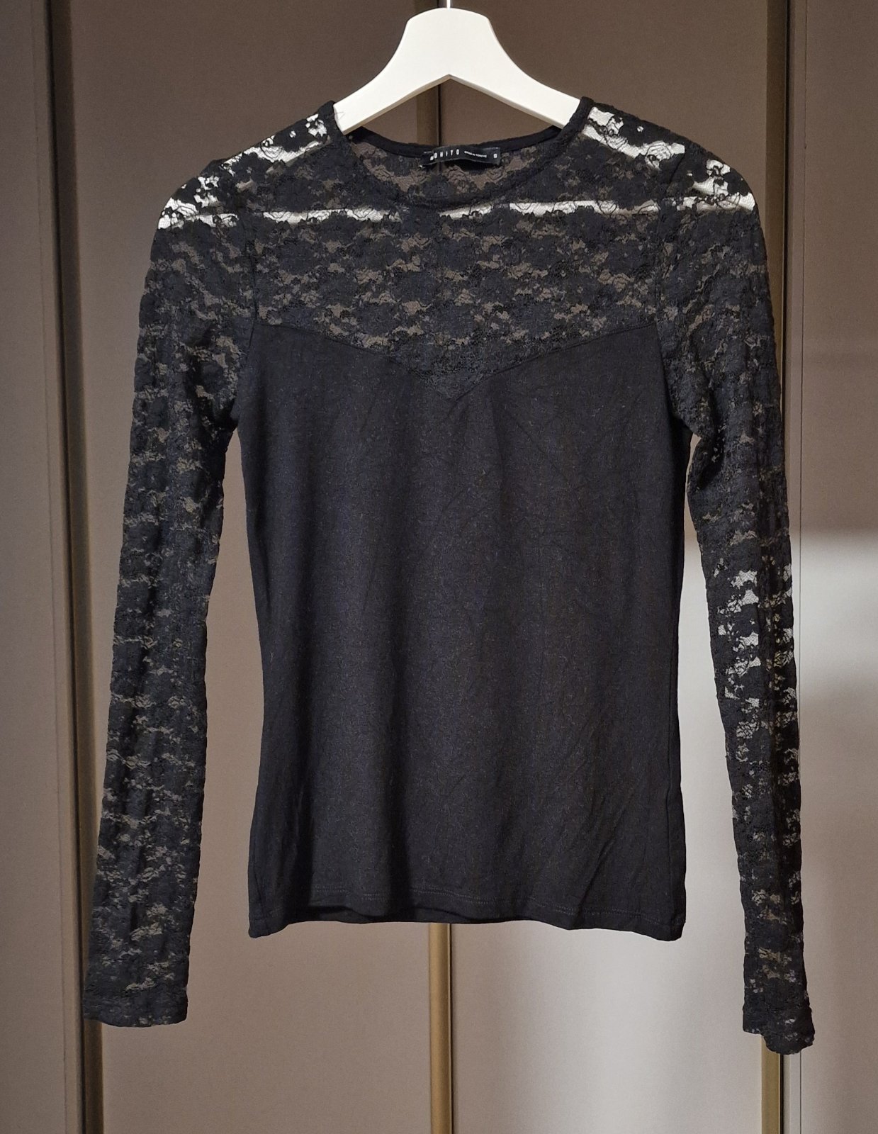 Predám nádherné čipkované tričko Mohito, veľ. S, 3 x oblečené, super stav. Dĺžka 57 cm, rukávik 74 cm, obvod hrudníka 80 cm v kľude, krásne sa prispôsobí. Veľmi pekne ukáže s bordó plísovanou sukňou Mohito v mojom albume. Cena 6,50 € plus poštovné.