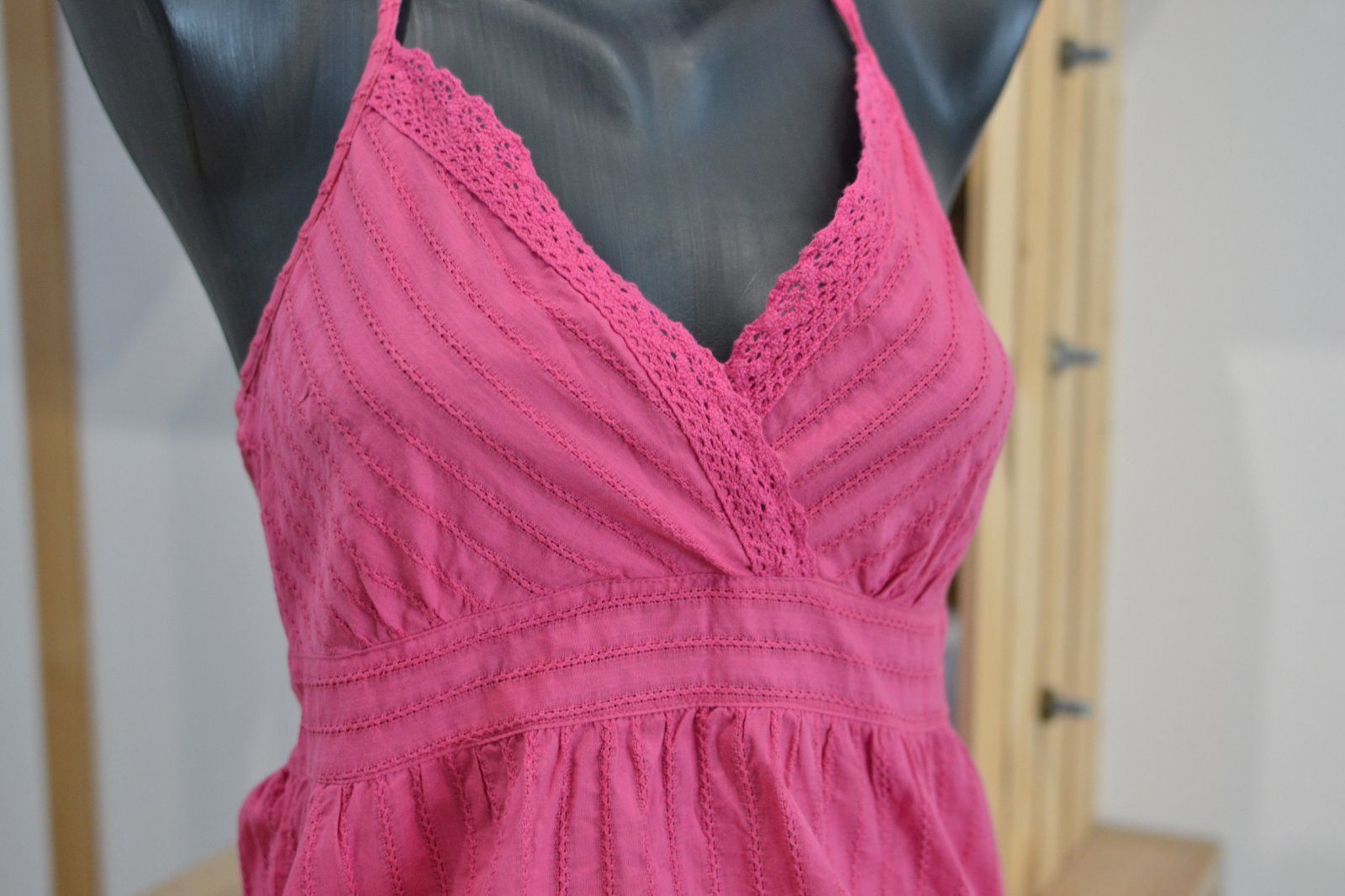 ružový top s viazaním okolo krku S