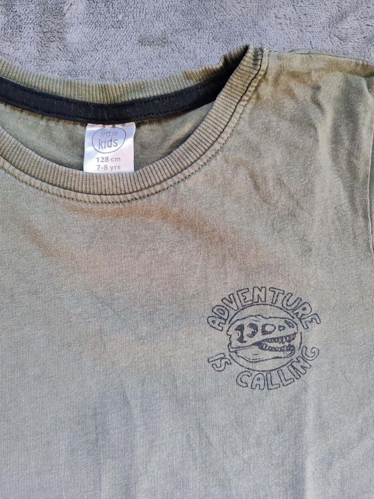 Krásne tričko vo veľmi peknom stave. Má ale drobný svetlohnedý fliačik. Veľkosť písaná 128.