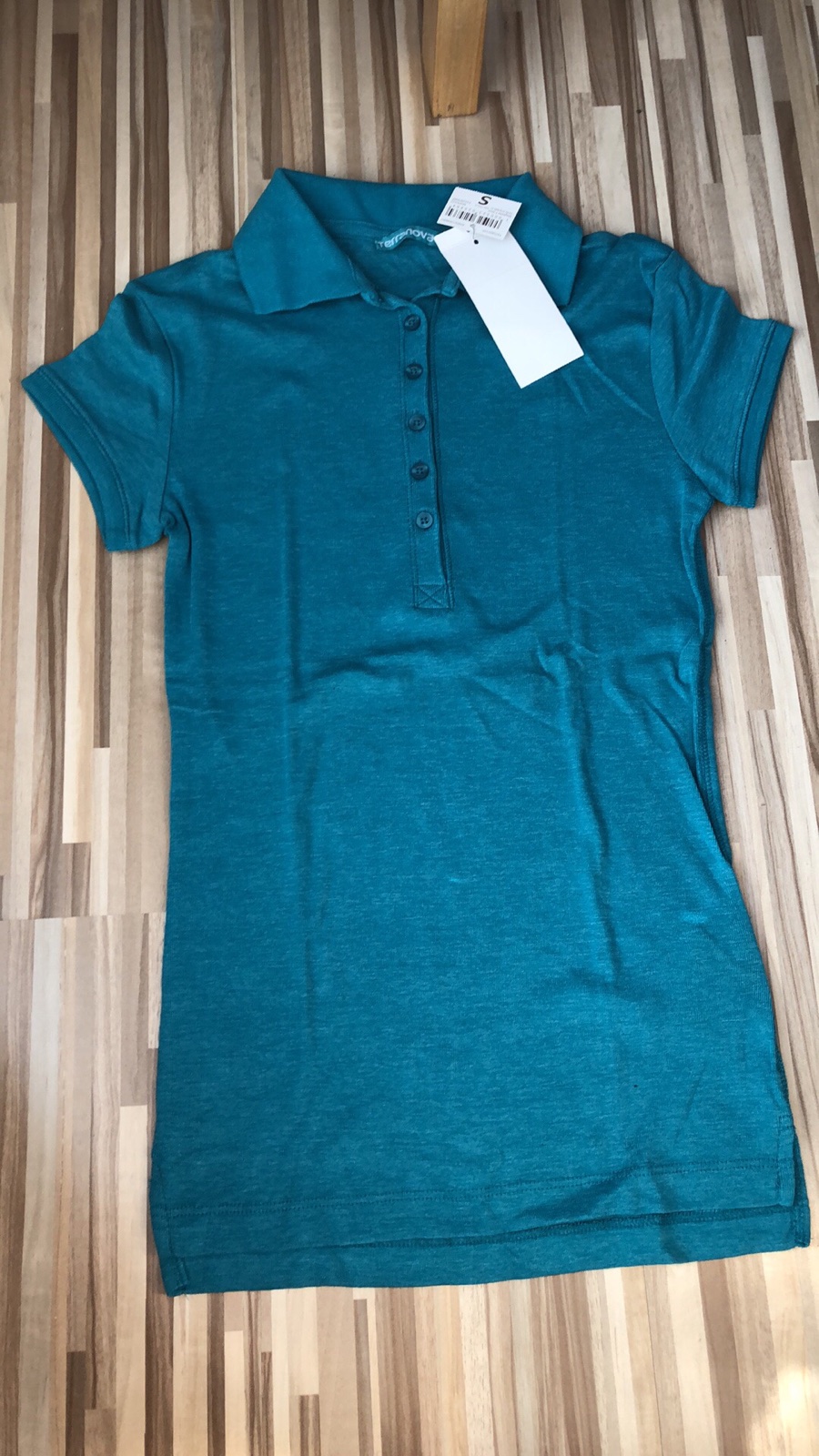 Obycajne bavlnene tricko v dobrom nosenom stave. Ma zelene kovove gombiky.
