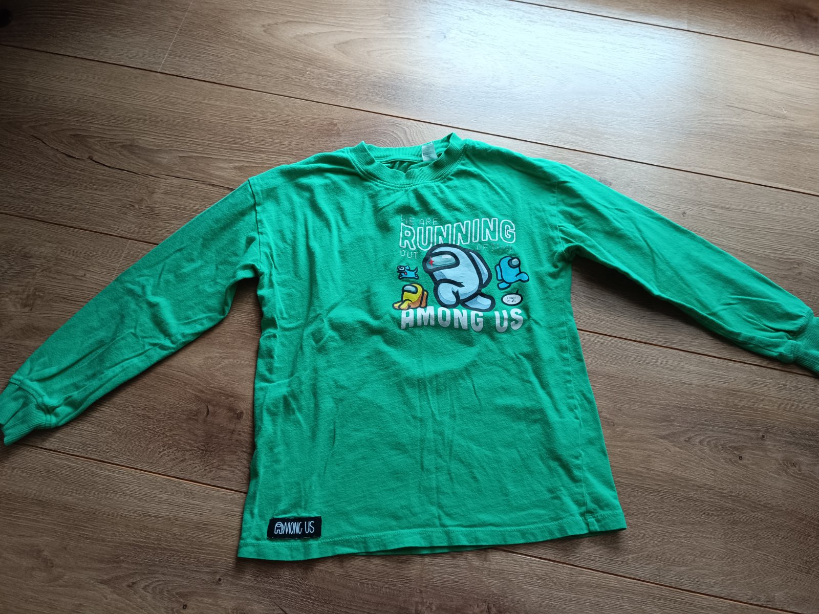 Tricko je vyrobene z bavlnenej latky v zelenej farbe s obrazkom Among Us.