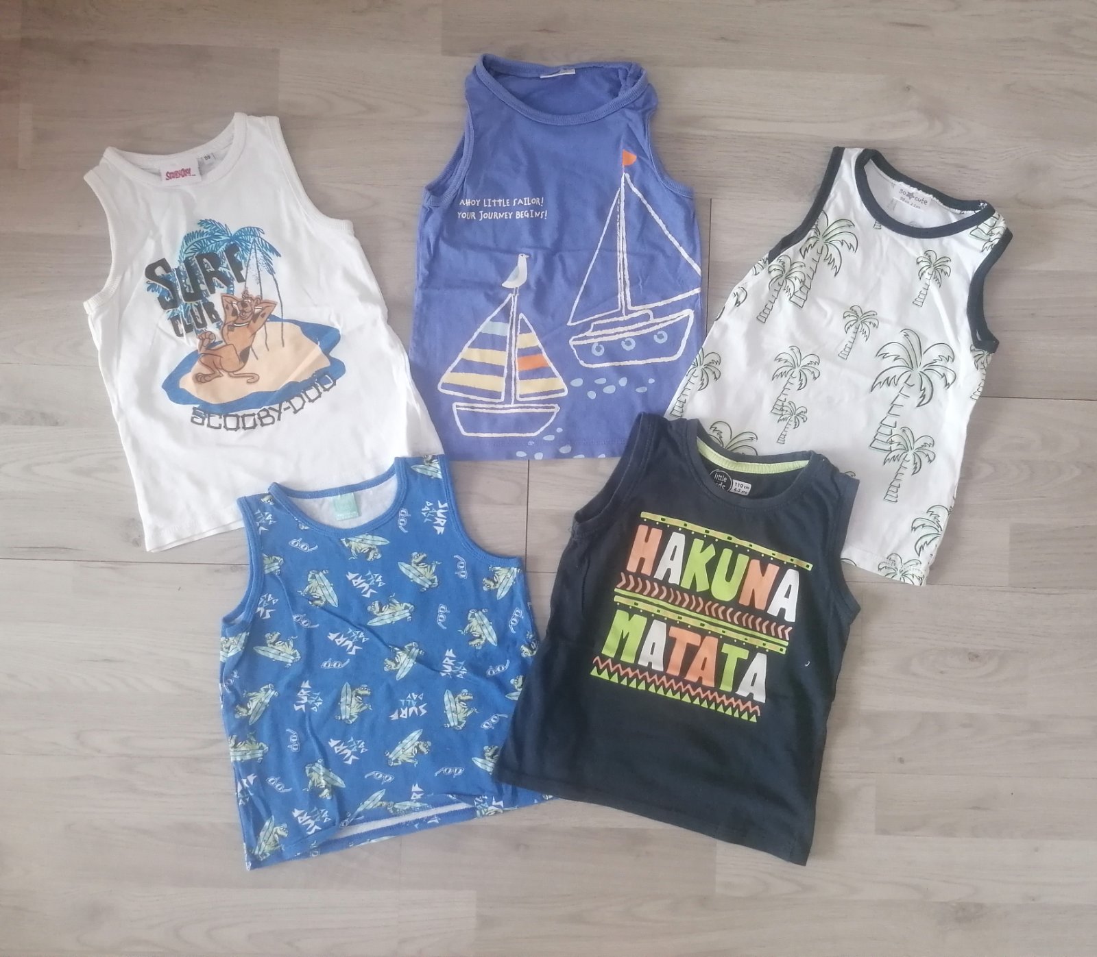 Tričká sú minimálne nosené,mali sme toho veľa a nestíhali vynosiť.100% bavlna. Tmavomodré s príšerkou Kiki&Koko je veľkosť 104 a zips sa dá rozopnúť,vrecko použiť ako kapsa a príšerka môže mať vonk...