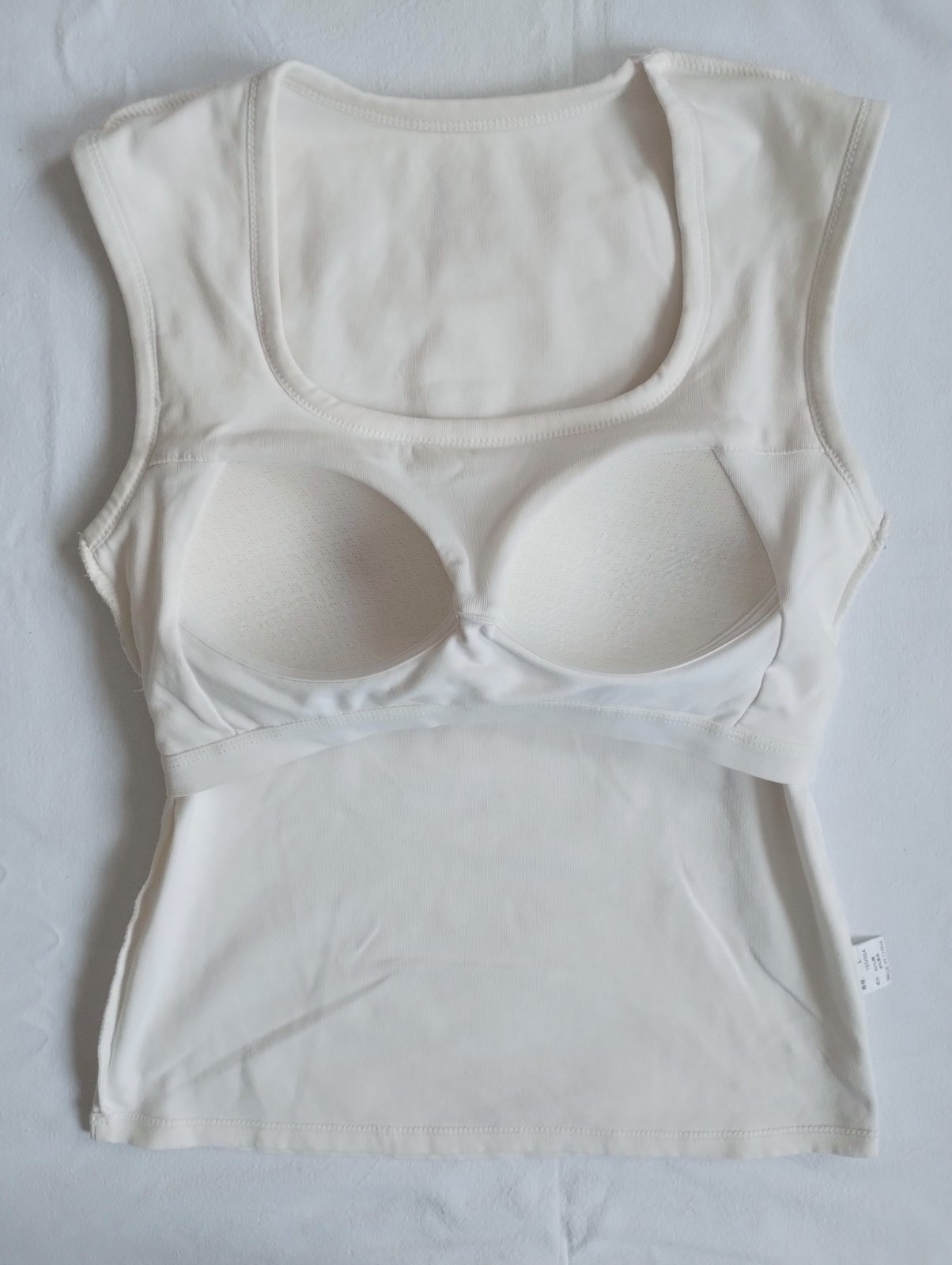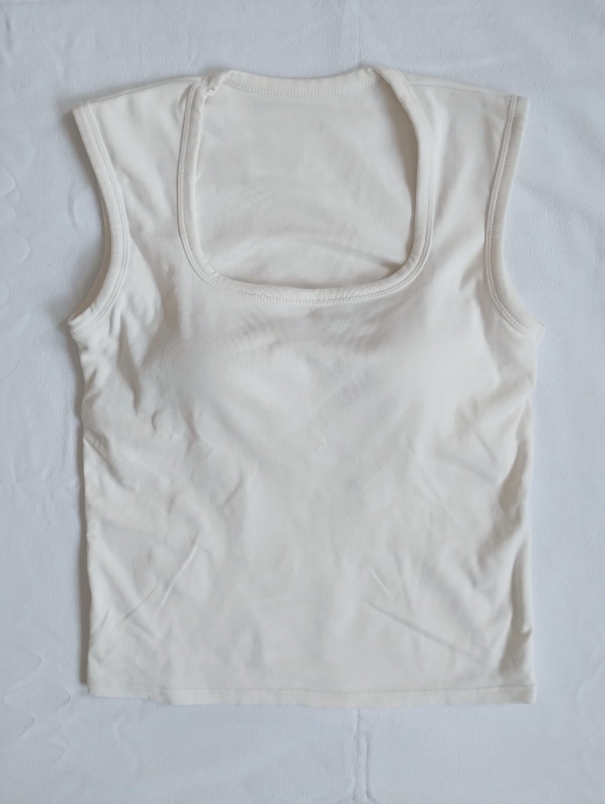 Predám biele tielko s vbudovanou podprsenkou. Má hrubé ramienka a elegantný štvorcový výstrih. Je z príjemného, elastického materiálu. Kupované z AliExpressu, štítok so zložením je po čínsky, preložila som ho Google prekladačom. 92% bavlna, 8% spandex. Veľkosť je písaná L ale sedí skôr ako M. Oblečené pár krát.