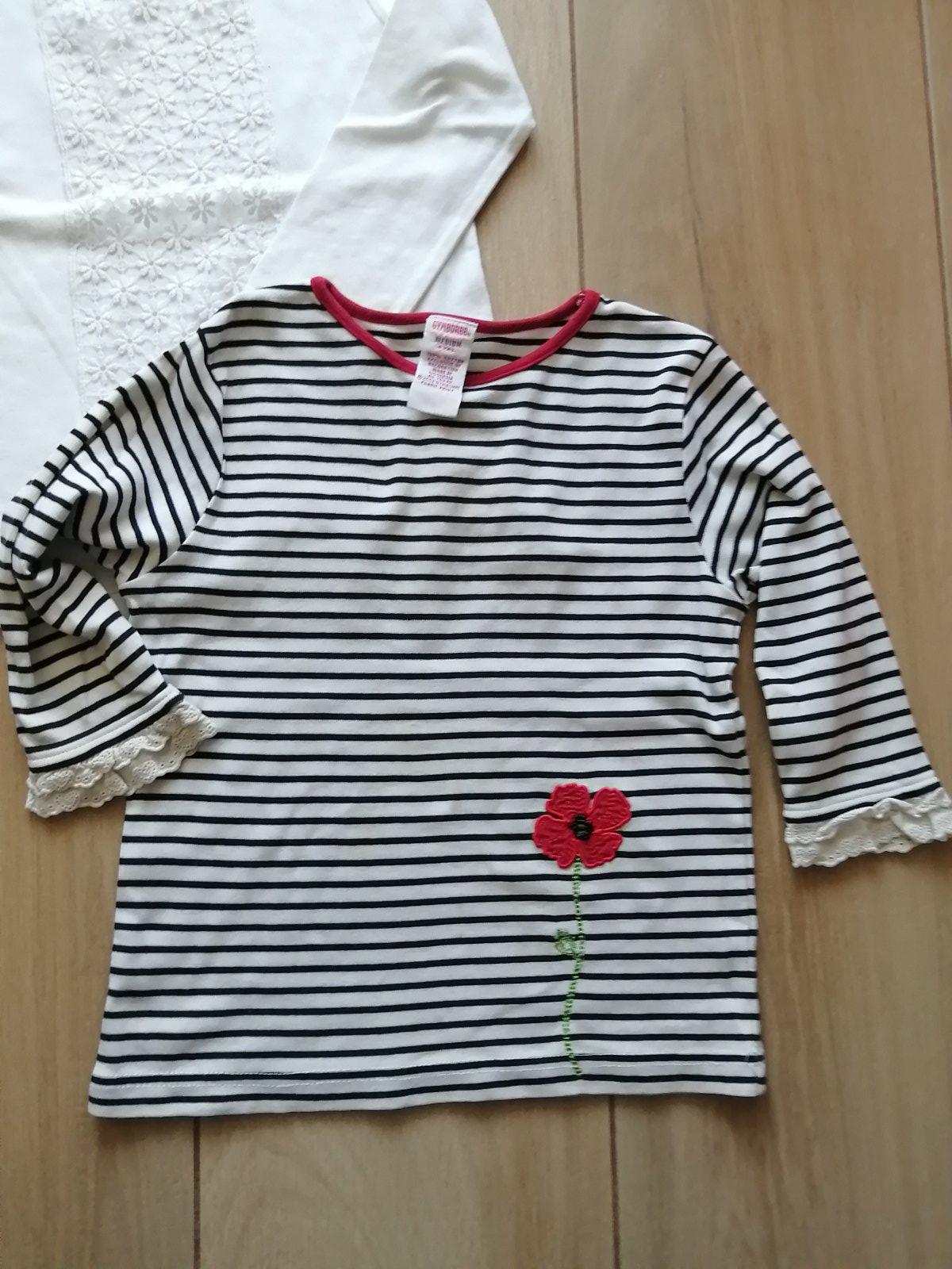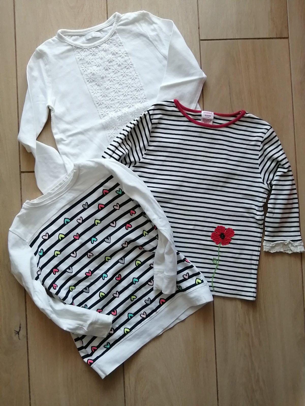 V peknom stave, 1 biele s kvetinkami + 2 grátis, jedno je pásikavé s trištvrťovým rukávom a s vlčím makom, duhé je so srdiečkami, na ňom som našla nenápadný fliačik (foto), už som neskúšala oprať, cena spolu