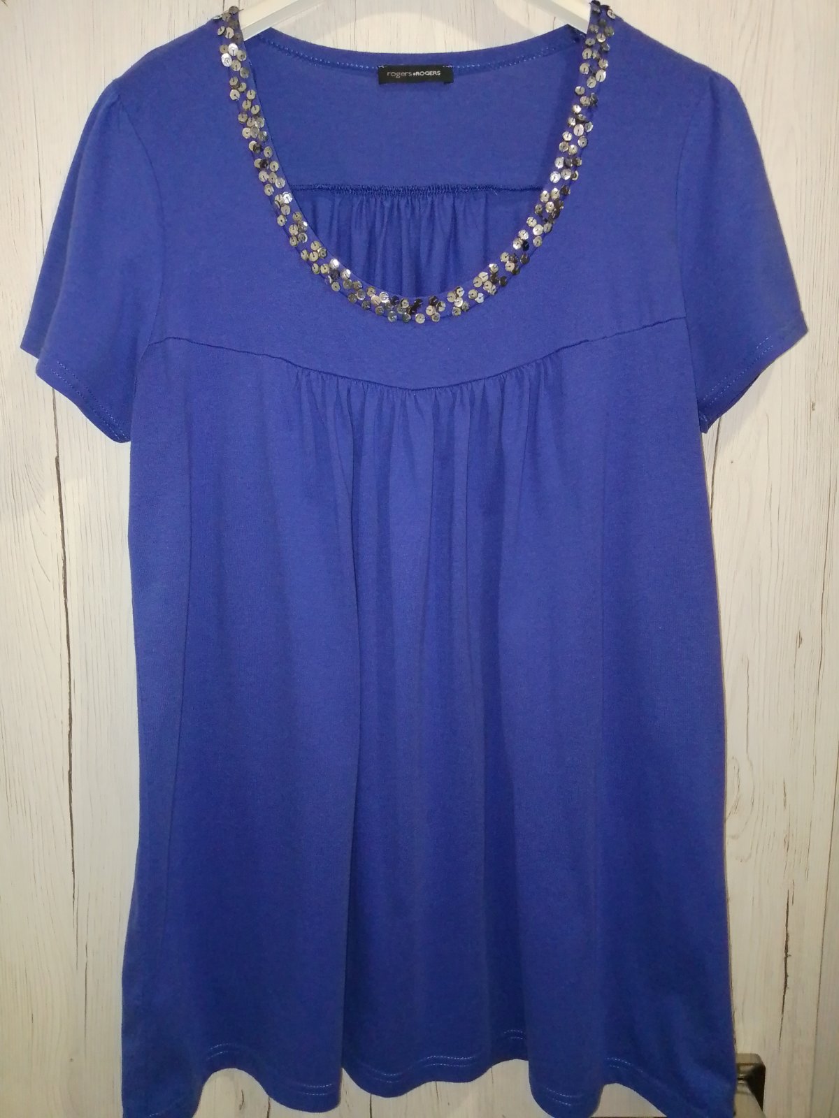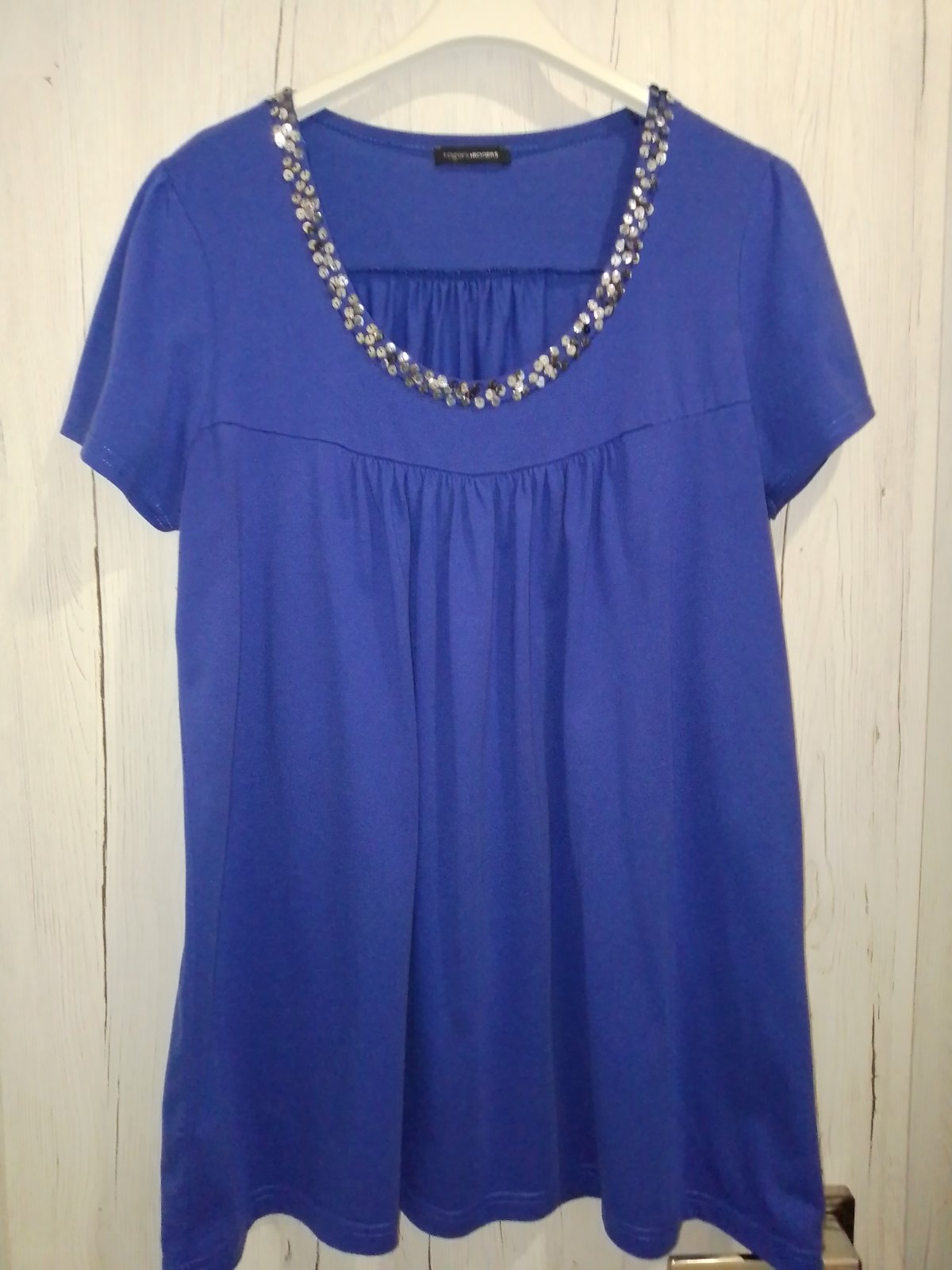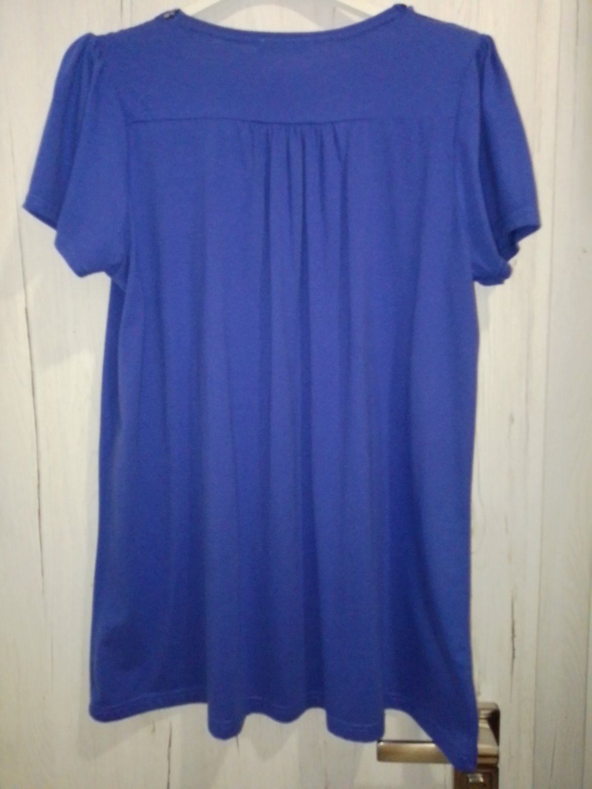Kráľovská modrá, bavlna a elastan , áčkový strih, dĺžka 75 CM, cez hrudník 2* 50 cm a povolí ešte,, spodná šírka 2*66 CM, mne už úzke, posúvam.