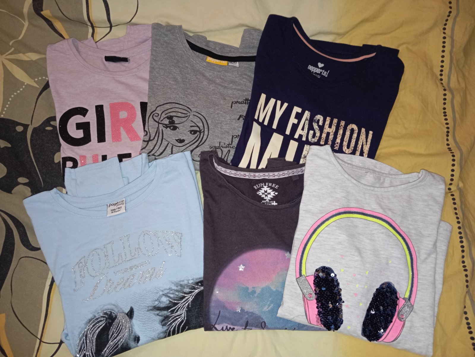 Nosené, v peknom stave. Šedé s dievčaťom je pyzamovy vrch, a druhé sedoruzove má zmolky na rukávoch. Inak pekný stav, svetlo modré a tmavomodré párkrát oblečené.
