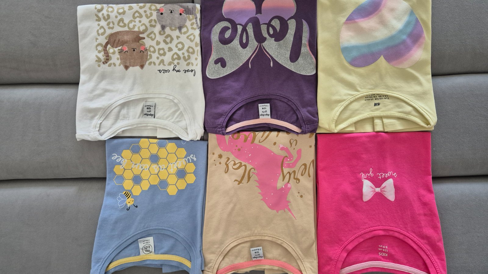 Jednorožec a ružové nenosené. Na žltom som našla miny škvrny, viď foto.