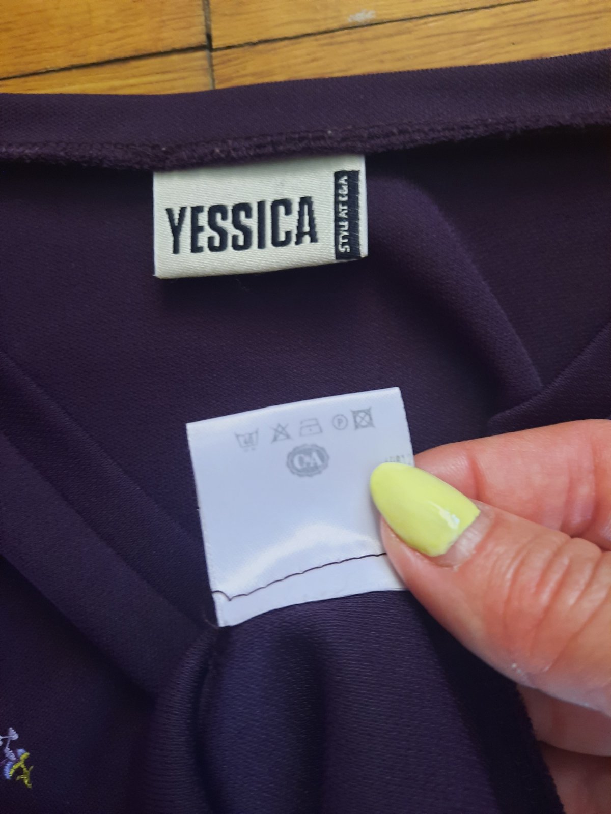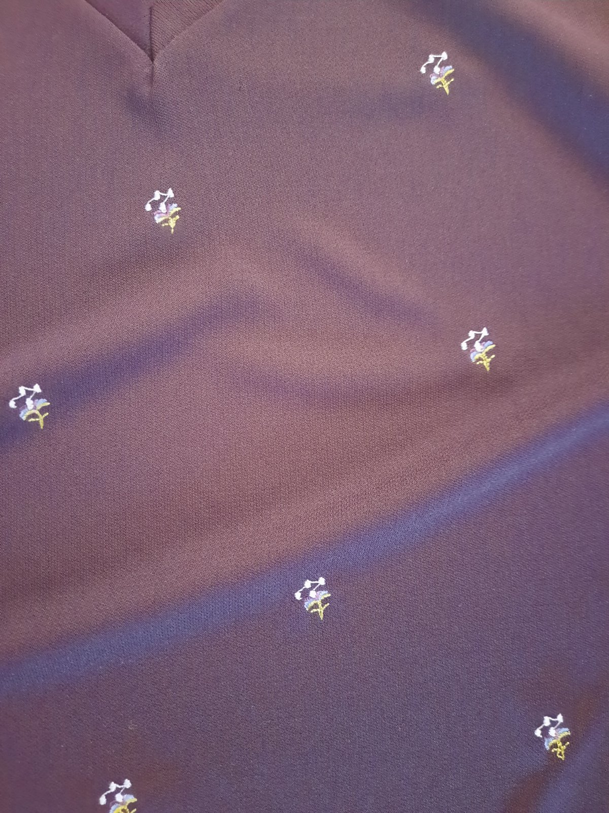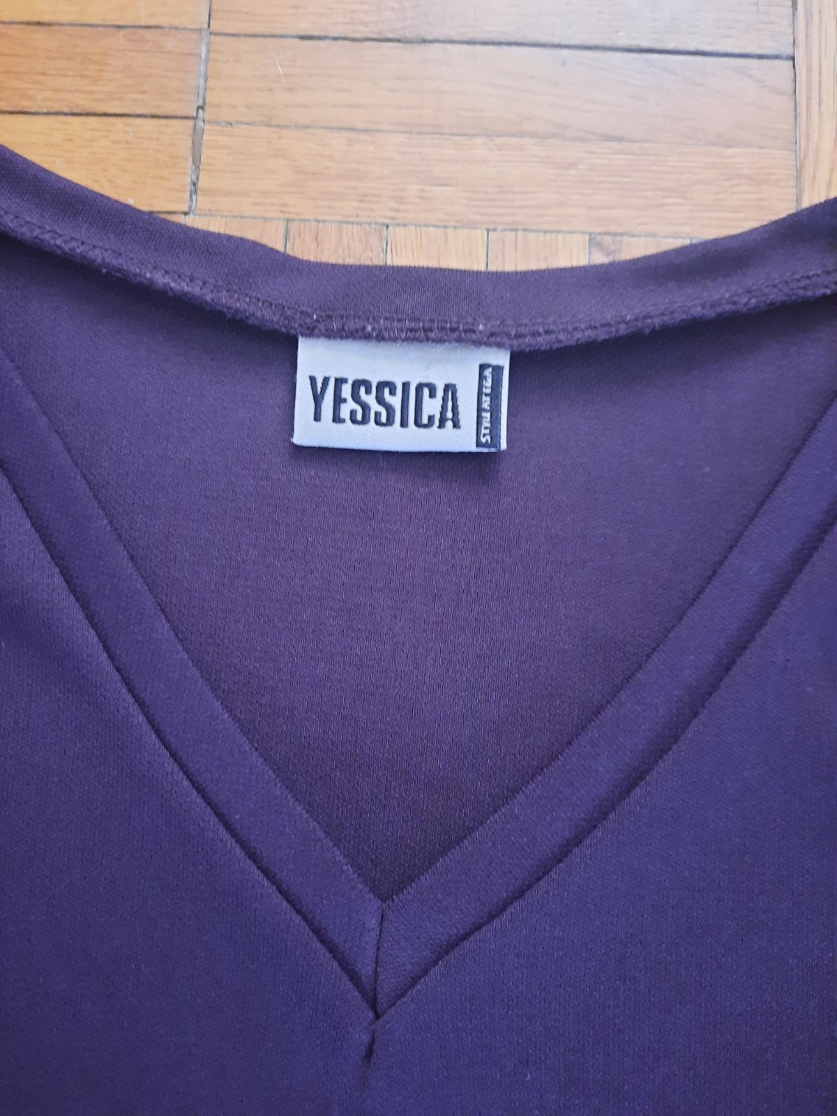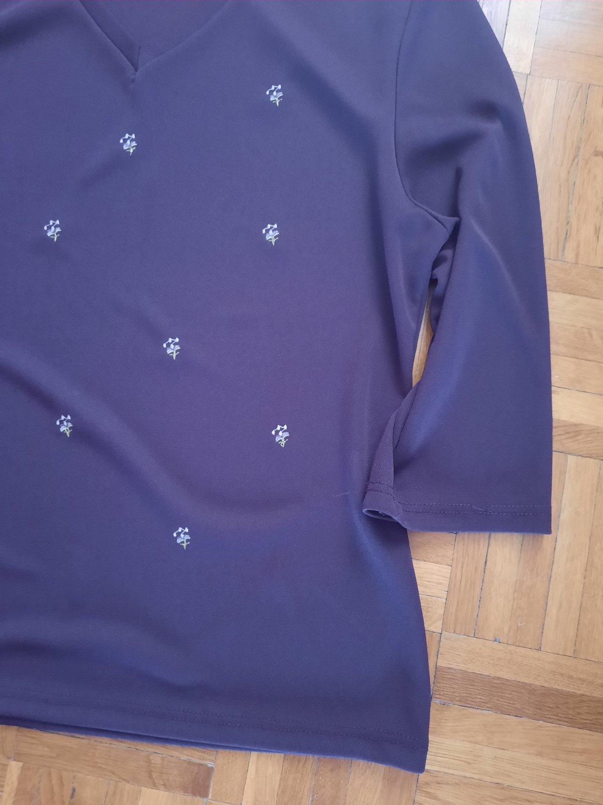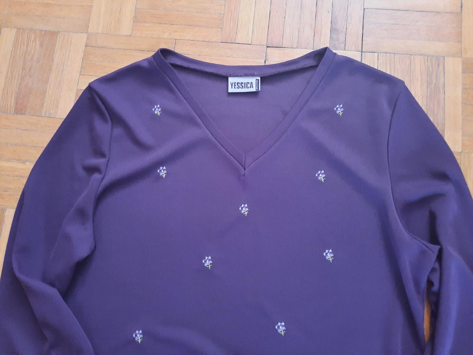 Pekný fialový top s jemným vyšívaným vzorom na prednej časti. Má malý výstrih do V. Výborný stav.