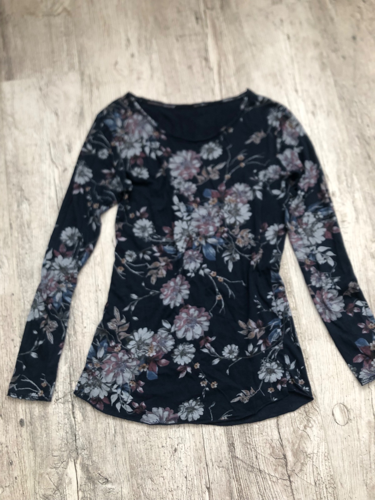 Tričko s dlhým rukávom, super stav, veľkostne ale sedí skôr na S ako na M, ako je na štítku. Dĺžka od pleca nadol 58 cm, rukáv od krku 70 cm, šírka pod pazuchami 40 cm v kľude. Farba je úplne temn...