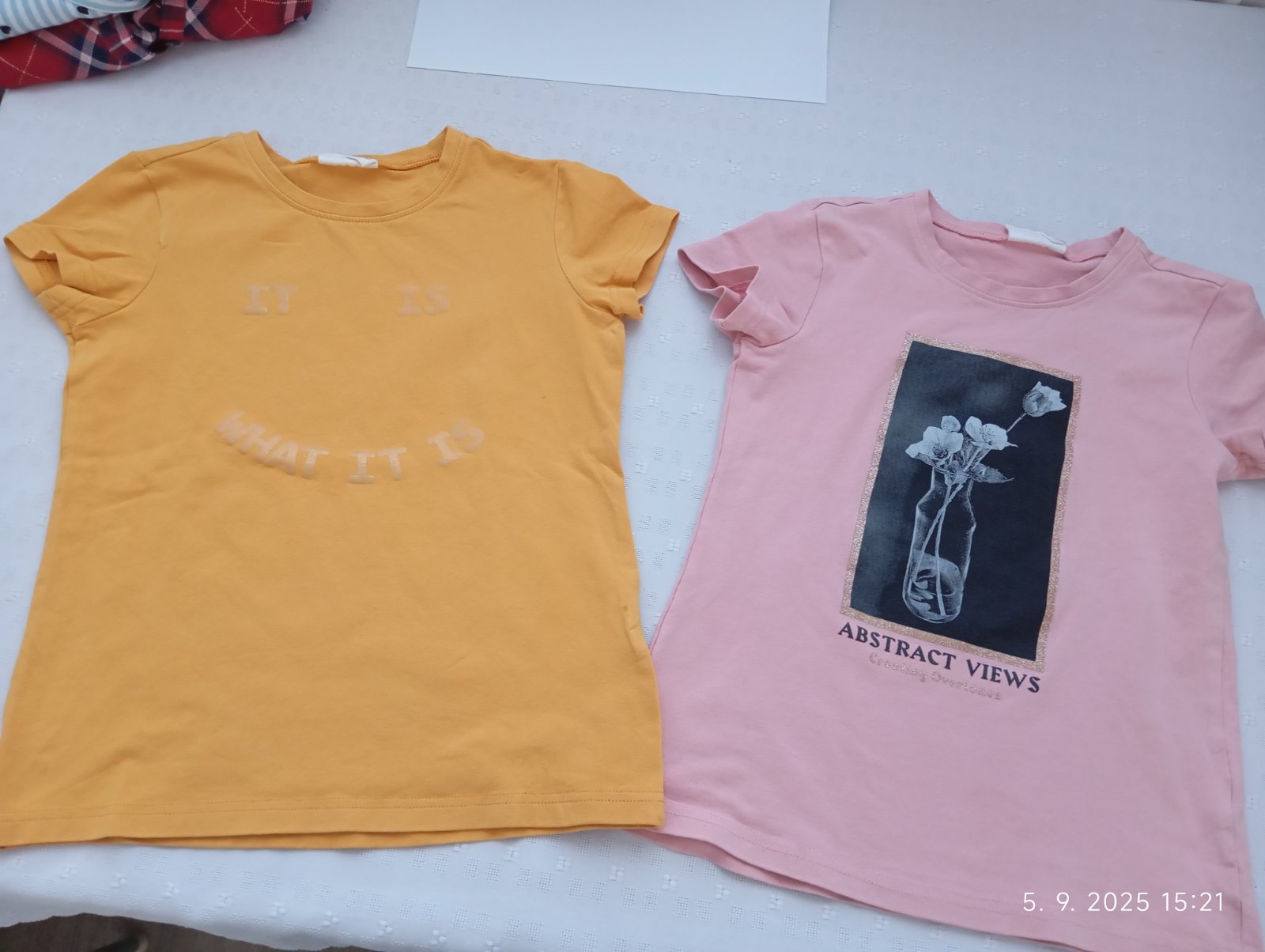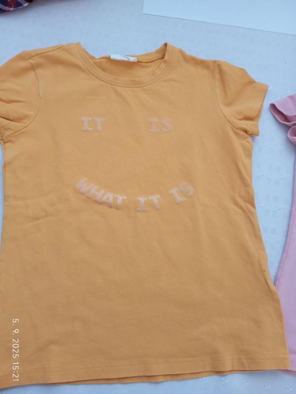 Ružové top stav ..horčicove minifliaciky..odfotené..cena spolu ...veľkosť je 122 nie ako píšu
