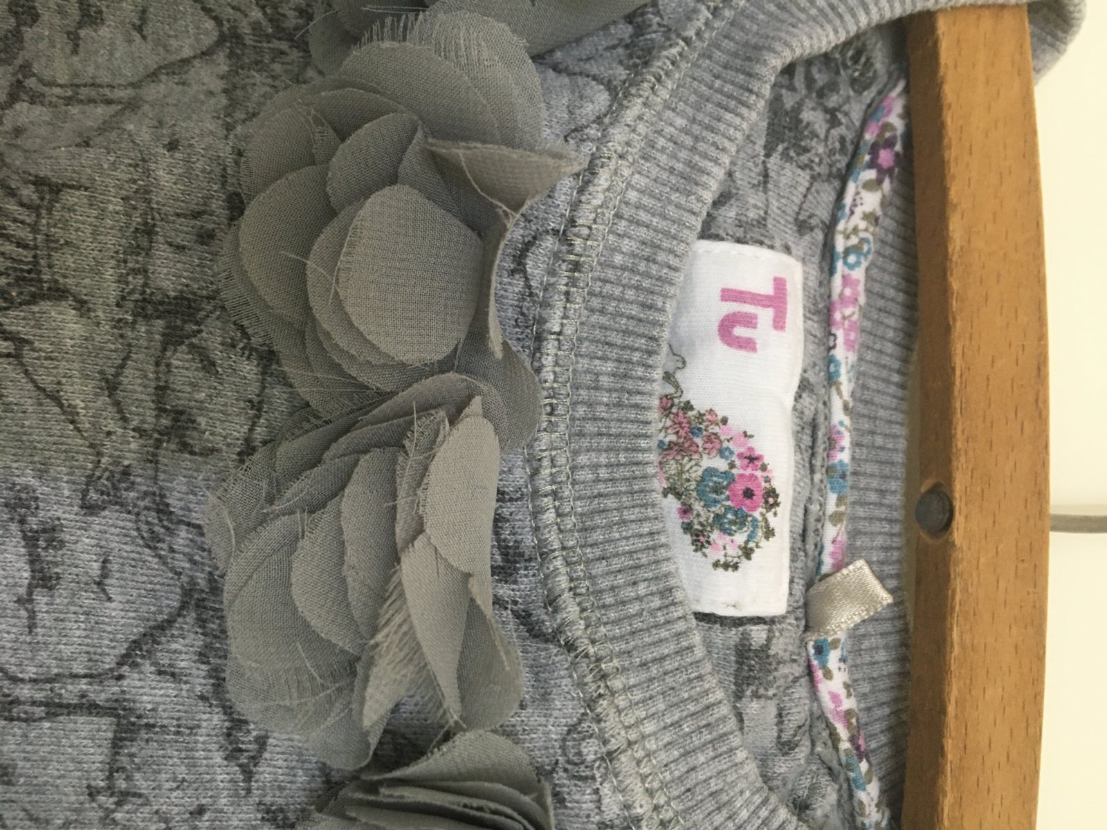 Tričko z hrubšej bavlny s dlhými rukávmi, zakončené patentom, okolo výstrihu je zdobené našitými tylovými kvetinkami. Celková dĺžka trička je 36cm, spodná dĺžka rukávov 29cm.