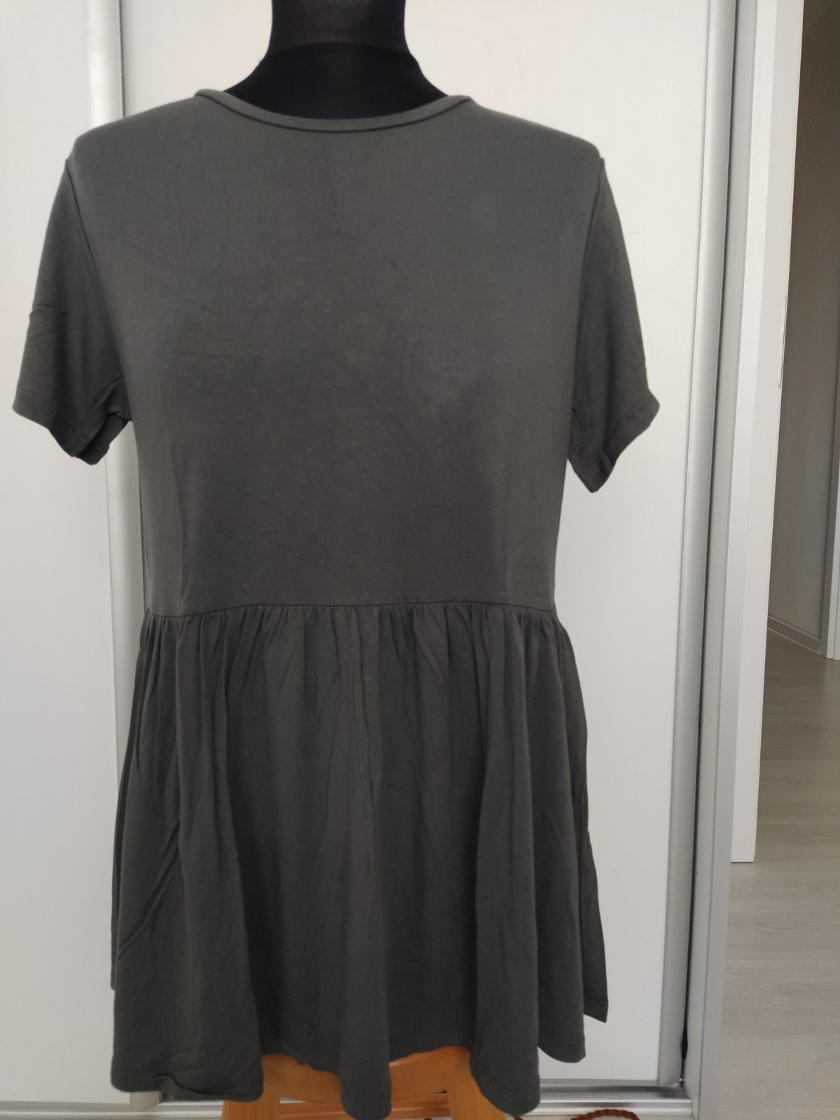 Sivé tričko s volánom.