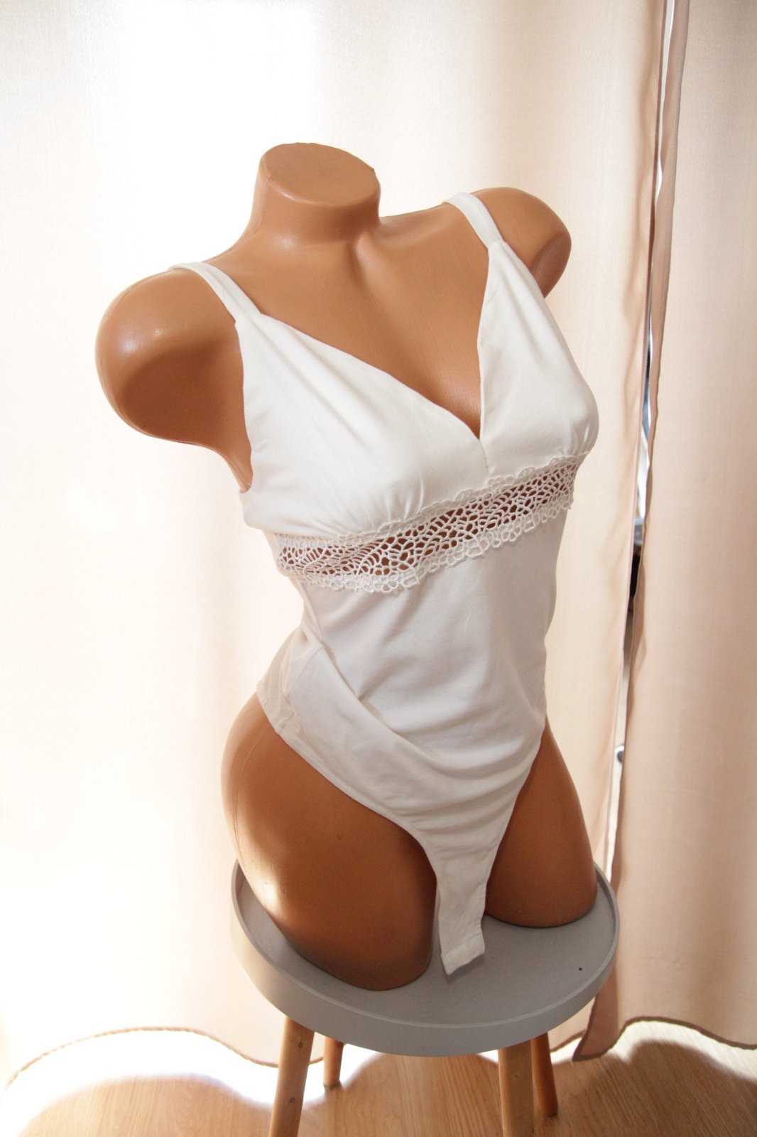 Bielo krémový body top, veľkosť M/L. Top stav. Elastický materiál.