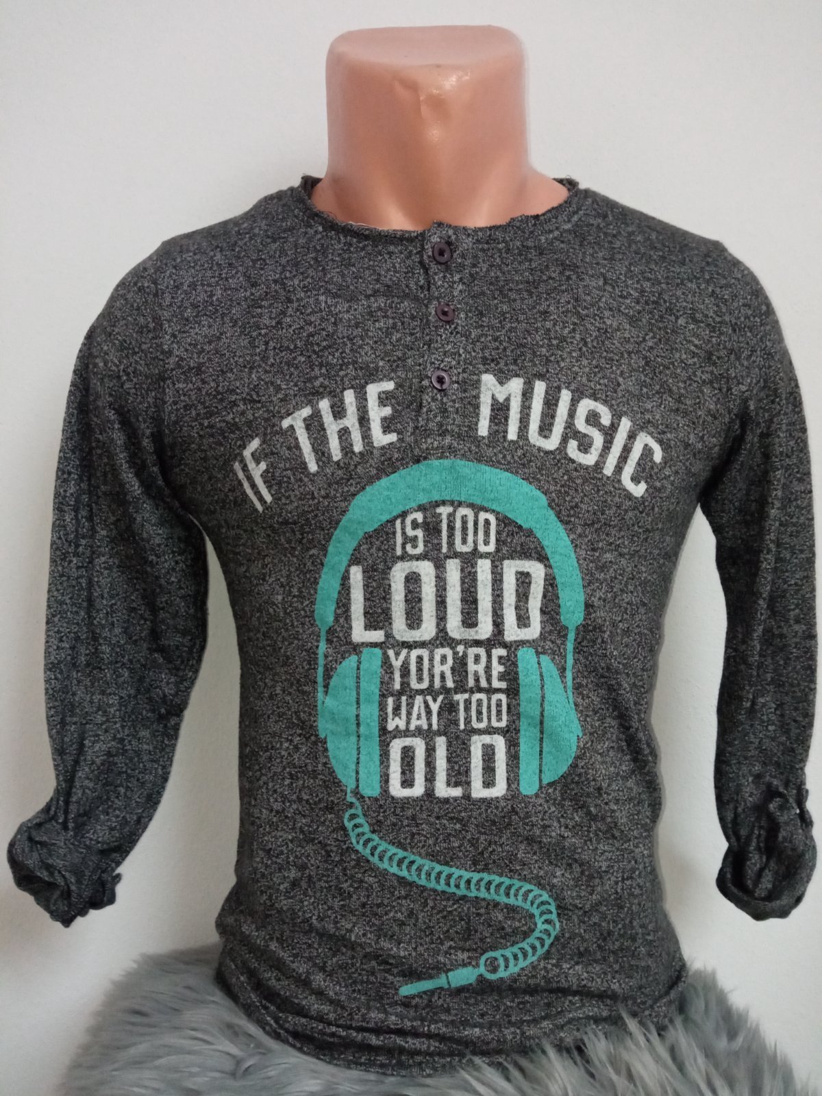 Chlapčenské svetríkové tričko s roll-up rukávom, elastické, okrúhly výstrih, zapínanie na tri gombíky, materiál 60%bavlna,40%polyester, pre 11-12 r.