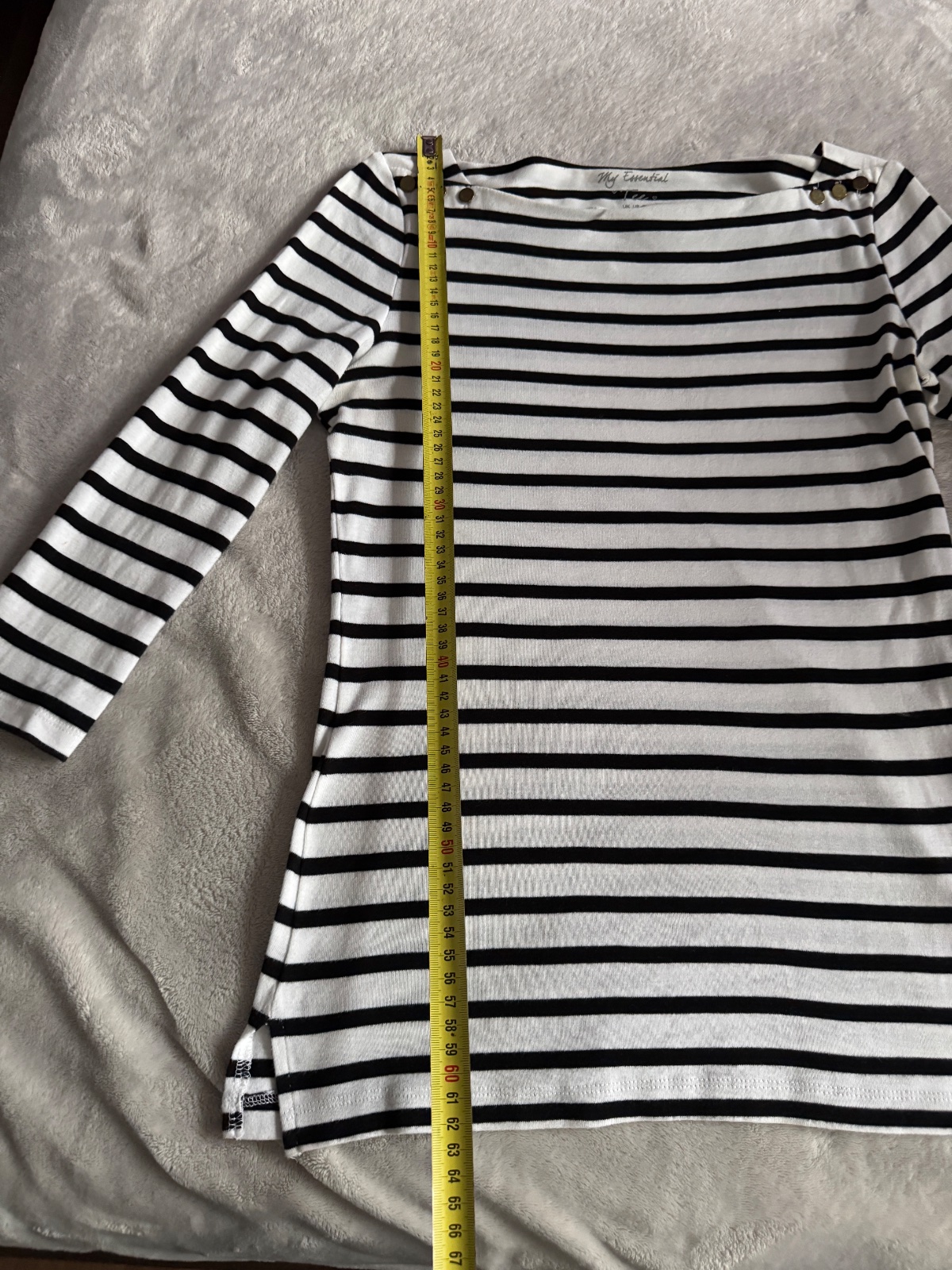 Oblečené asi len raz,je pokrčené lebo bolo uskladnené,po vyžehlené bude pekné,príjemný ľahký materiál,predná dĺžka 79 cm,zadná dĺžka 95 cm