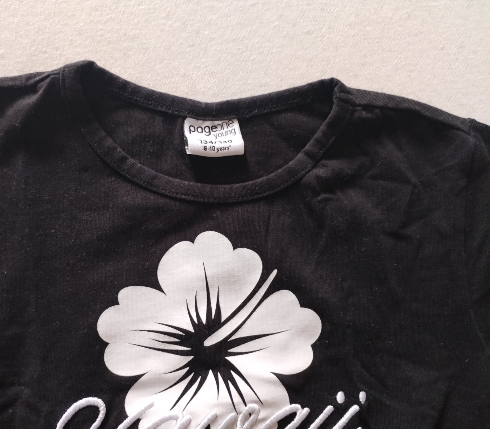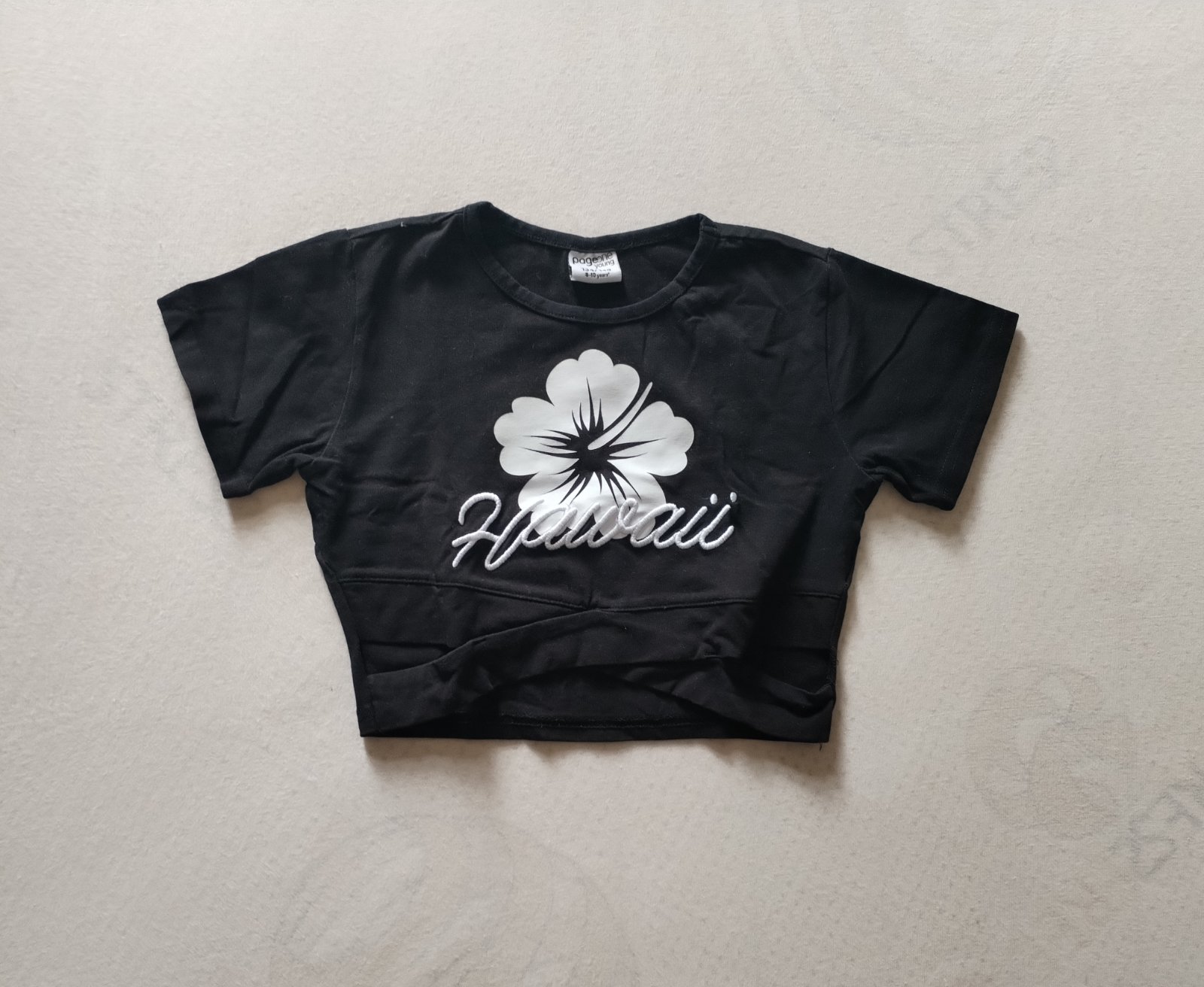 Raz oblečené, krátke, crop tricko, s nápisom Hawai.
