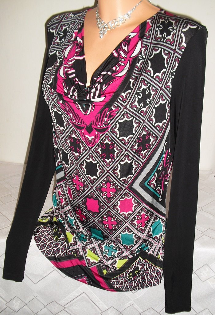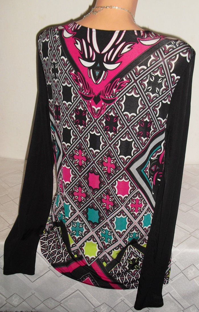predam nadhernu dlhsiu tuniku, znackova, nadhernom stave, velkost uvedena 40, nase l. elasticka . sirka 51,5 cm x 2 az 62 cm, dlzka 74 cm.