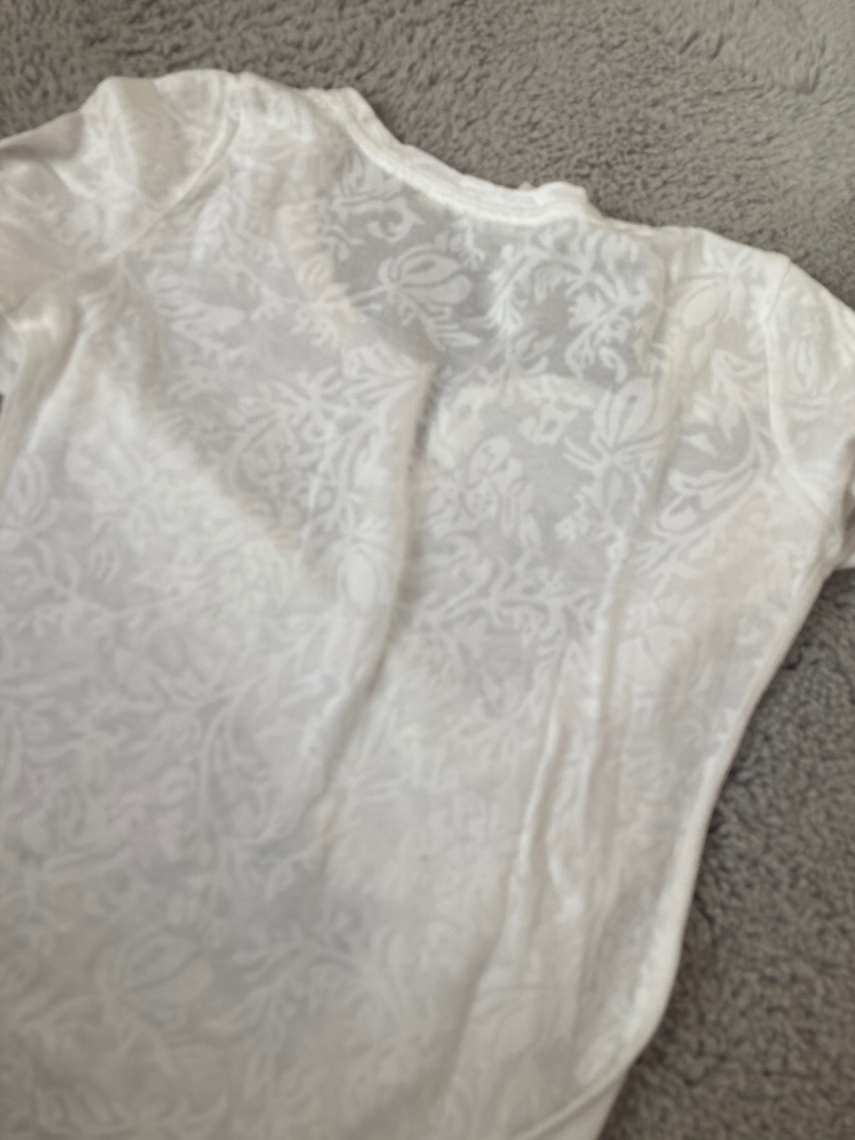 Biely vrúbkovaný to vyšívaný napísal E v spolupráci so značkou je to čistá bavlna okraj tričká sú rozmery dĺžka 41 cm šírka pod pazuchami v kľude 35 cm ale veľmi elastické 52 cm dĺžka rukávu 57 cm ...