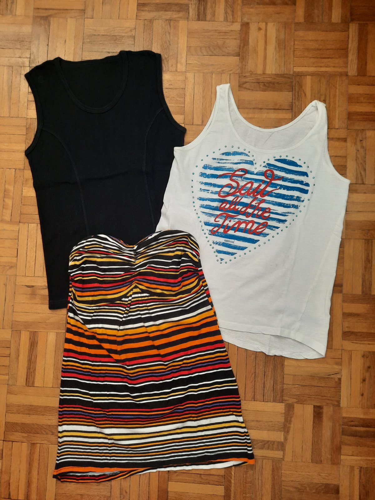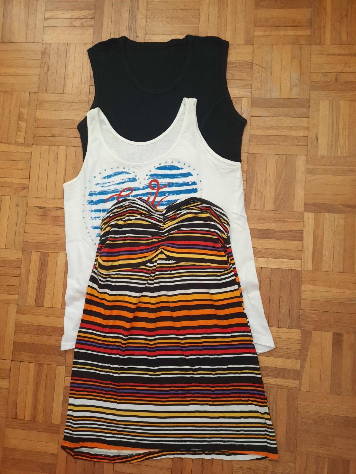 Pekné letné tielka+ top bez ramienok. Pekné sýte farby, výborný stav.