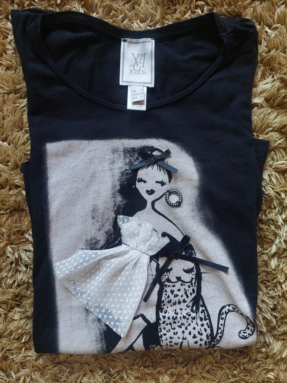 Tricko s peknou aplikáciou, nariasene na ramenách.