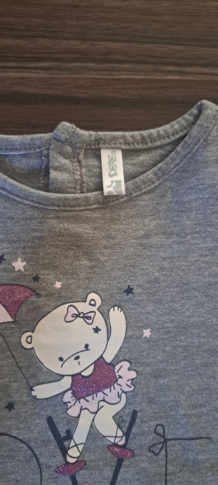 Tricko v top stave, bez poskodeni, par krat oblecene, kupovane nove, prijemny elasticky material, vpredu trblietkavy obrazok, nositelne od velk. 92. Rozmery: dlzka 38cm, sirka 28cm, dlzka rukava o...