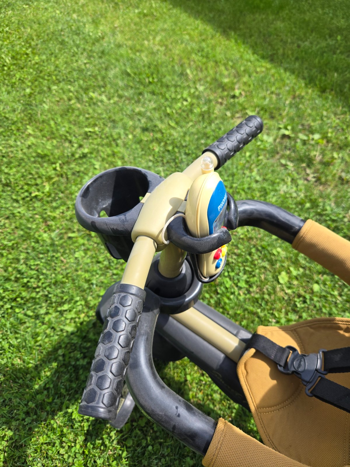 Rúčka je nastaviteľná, strieška odoberatelna. Vzadu odkladací priestor. Na volante priestor na fľašu. Len osobný odber.