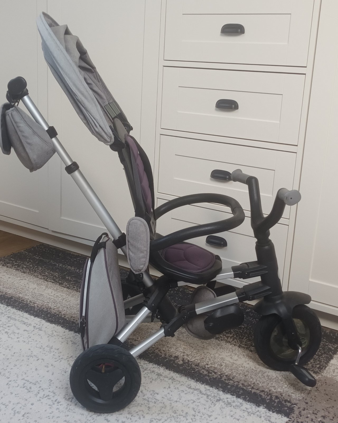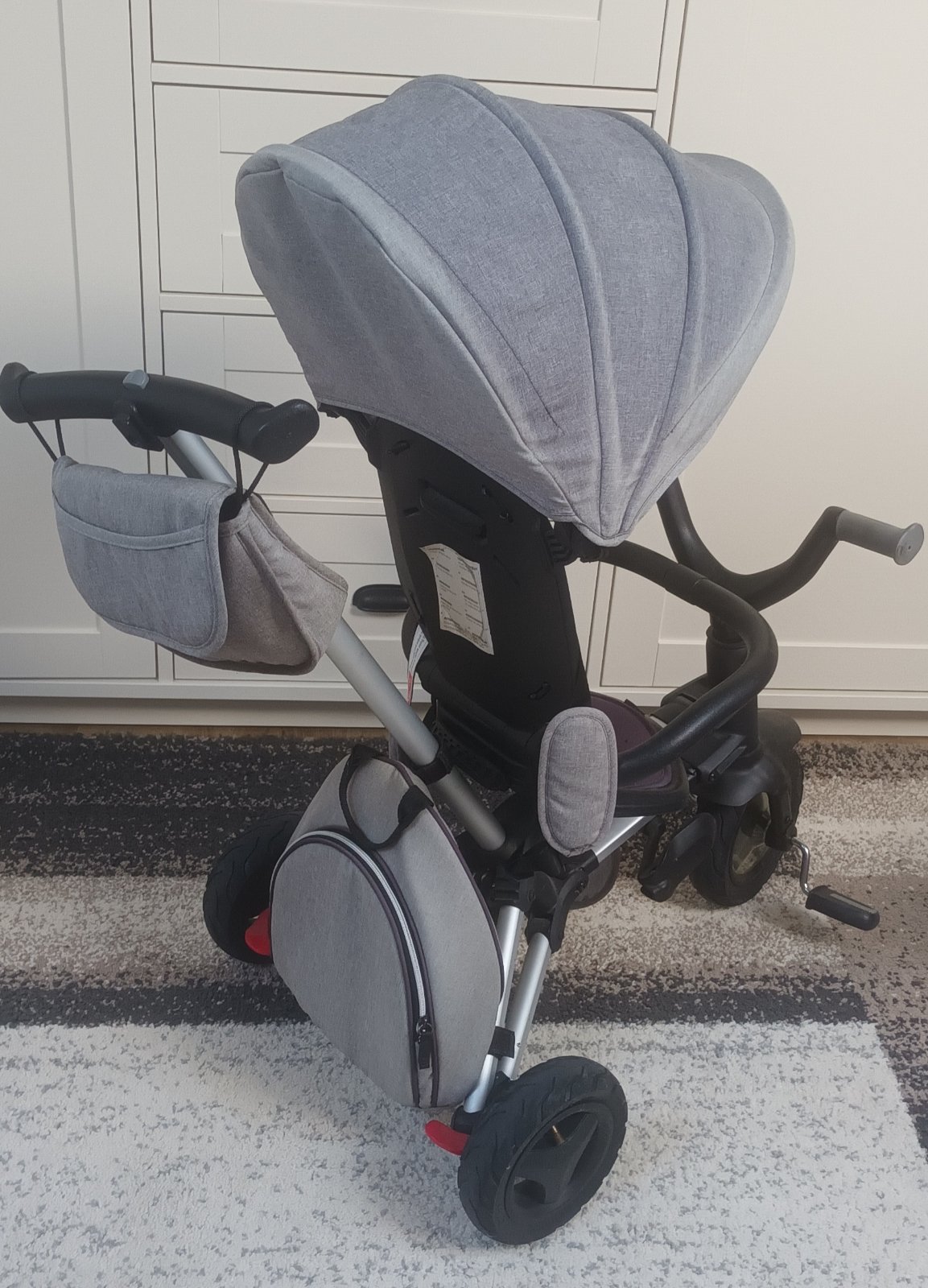 Ptedàm použitú trojkolku/kočík. Je plne funkčná, bez funkčných chýb, len je trošku farba vyblednutá od slnka. Pòvodná cena bola 127eur. Len osobný odber v Dolnom Bare alebo v DS.
