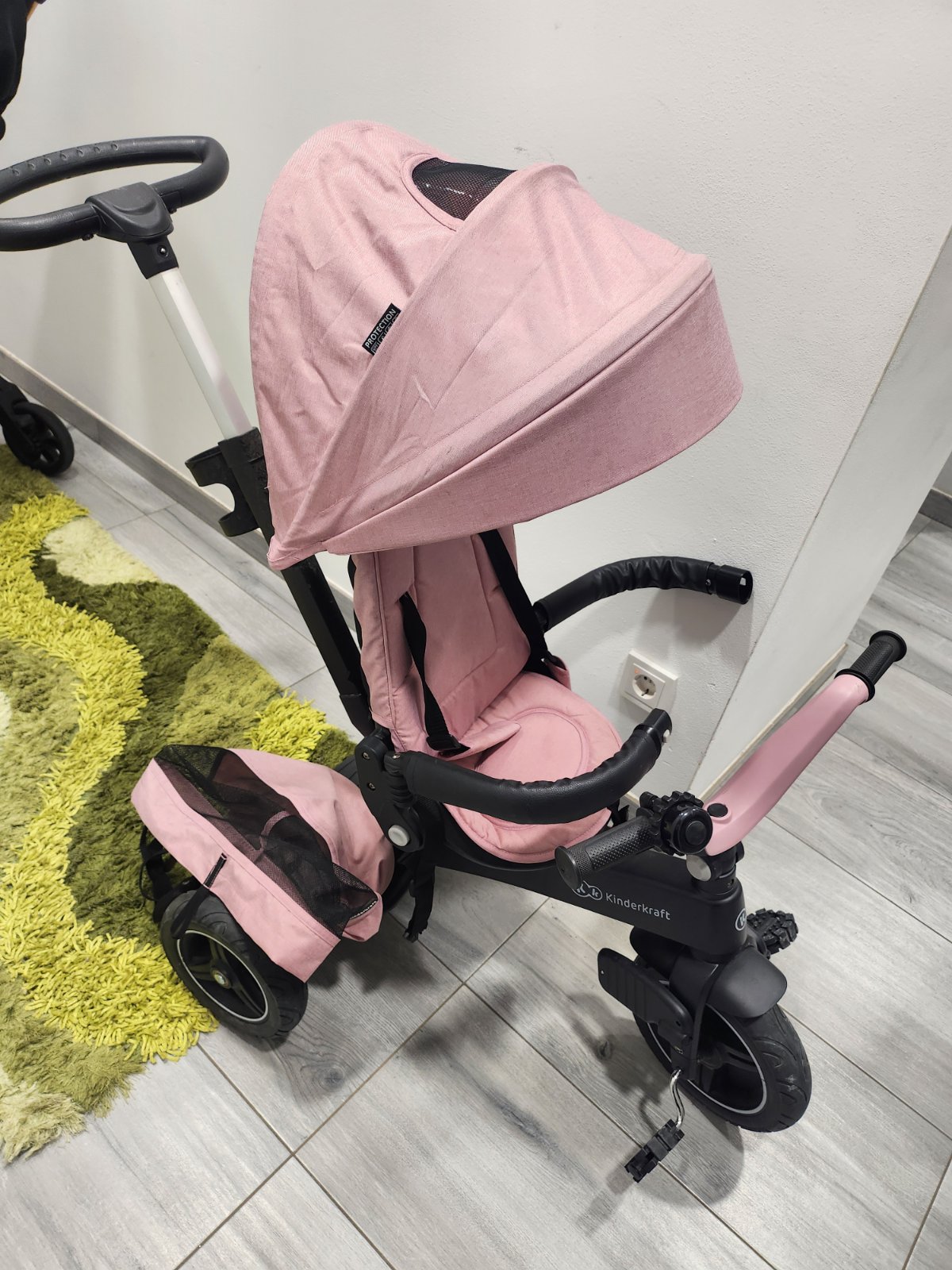 Trojkolka kinderkraft v zachovalom stave. Ale treba ju vyčistiť. Plné funkčná. Strieška na trošku inú farbu kvôli slnka. Trojkolka sa nedá demontovať iba tyč. Iba osobný odber v Pezinku.