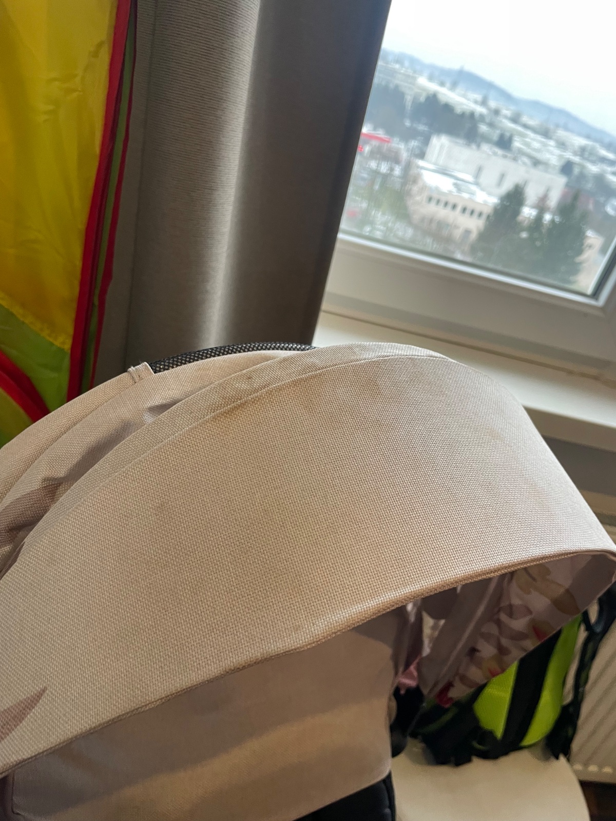 Použitá iba do 5 krát, inak nám doma stojí. Na strieška sú fľaky, netušim od čoho-viď foto. Nesnažila som sa to dať dole.