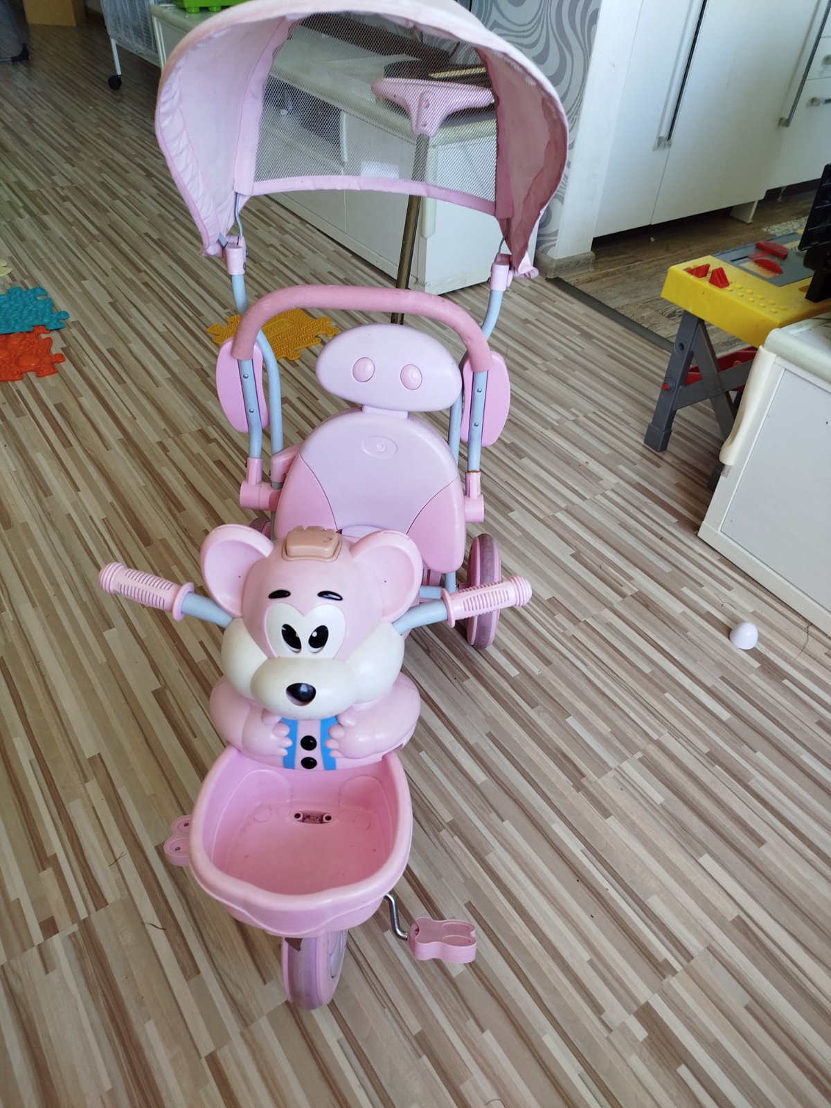 Už staršia, s viacerými poškodeniami napr. rúčka na prídavnej tyči je už vo vrchnej časti nalomená, stále je ale plne funkčná, stále dokonca hrá i svieti, len už na nej vidieť zub času.