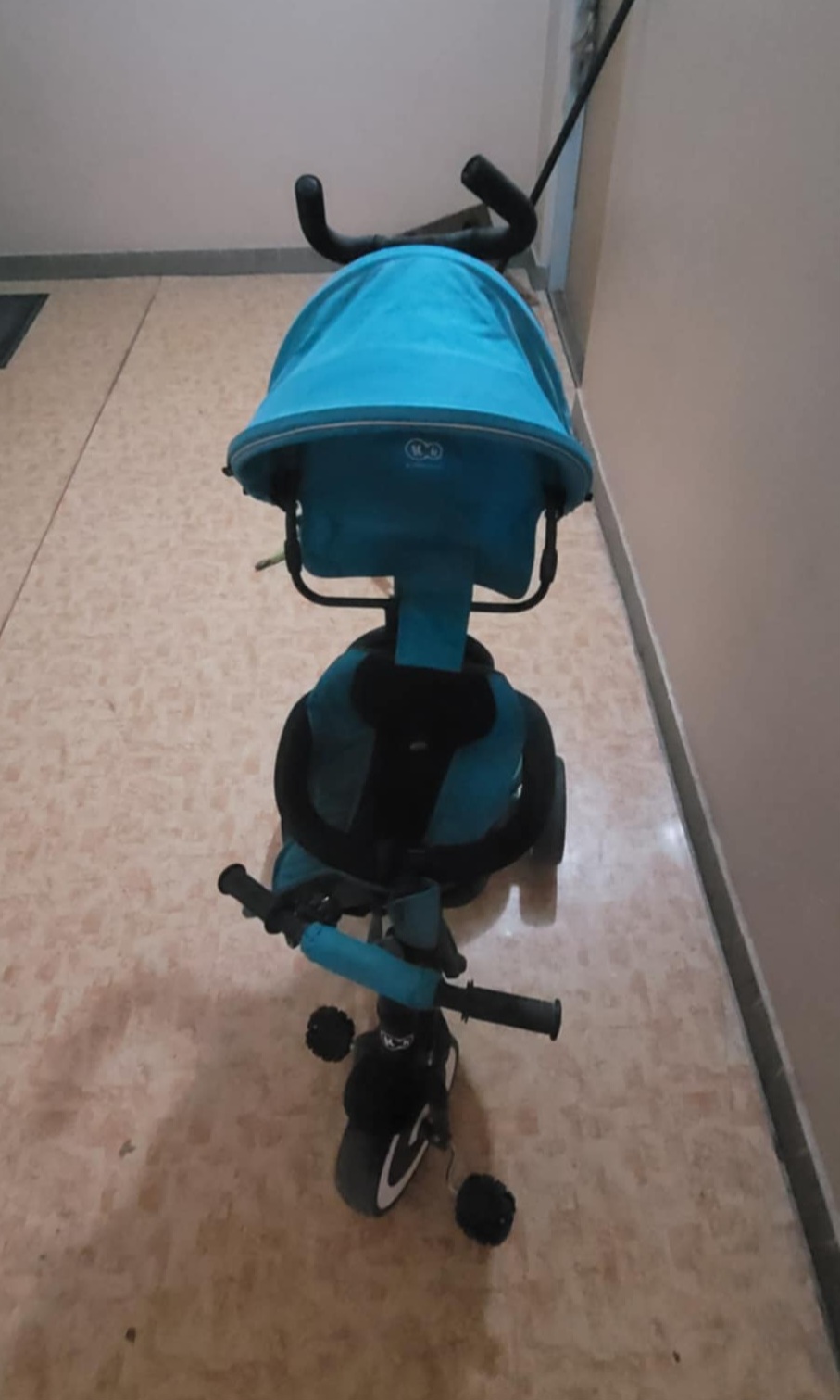 Trojkolka ASTON je určená pre deti od 9 mesiacov do 5 rokov. Možno ju ľahko prispôsobiť veku a výške dieťaťa. Je tiež možné prepojiť materskú rukoväť s riadidlami dieťaťa a umožniť tak rodičom mať plnú kontrolu nad trojkolkou. Vďaka sklopnej opierke nôh a možnosti otočiť sedadlo v smere alebo proti smeru jazdy, možno trojkolku použiť aj ako kočík. Vlastnosti: - veľké kolesá odolné proti prepichnutiu z EVA peny so zvýšenou pevnosťou, takže sa nemusíte obávať poškodenia kolies počas jazdy. - s funkciou voľného kolesa môže dieťa voľne šliapať, nezávisle na osobe, ktorá ovláda trojkolku - vďaka sklopnej opierke nôh a možnosti otočiť sedadlo v smere alebo proti smeru jazdy, možno trojkolku použiť aj ako kočík. - mechanizmus spájajúci materskú rukoväť s riadidlami dieťaťa umožňuje rodičom v prípade potreby udržať plnú kontrolu nad trojkolkou Bezpečnosť - päťbodový bezpečnostný pás s polstrovaním a prídavným popruhom chráni dieťa pred vypadnutím - bezpečnostná zábrana pre dieťa poskytuje dodatočnú ochranu a môže byť úplne odstránená pre ľahký prístup pre staršie deti - brzdy na zadných kolesách zvyšujú bezpečnosť pri zastavení a pri usadení sa a vyberaní dieťaťa z trojkolky. Pohodlie - veľká skladacia strieška chráni pred slnkom a má prídavné okienko umožňujúce rodičovi dozerať na dieťa - 2smerná nastaviteľná vzdialenosť sedadla od pedálov, ktorá umožňuje lepšie prispôsobenie polohy dieťaťa - výškovo nastaviteľná rodičovská rukoväť umožňuje nastavenie výšky rodičov pre pohodlné používanie. Príslušenstvo - praktická taška na drobnosti namontovaná na rukoväti - držiak na nápoje - priestranný kôš za sedadlom na predmety, ktoré potrebujete pri chôdzi alebo na detské hračky - zvonček pre vaše dieťa Výrobok bol testovaný a schválený podľa európskych bezpečnostných noriem EN 71-1. Rozmery - dĺžka: 92 cm - šírka: 50 cm - výška: 115cm - hmotnosť: 9,5 kg,Len osobny odber!!!Je zachovale ,pôvodná cena 130€
