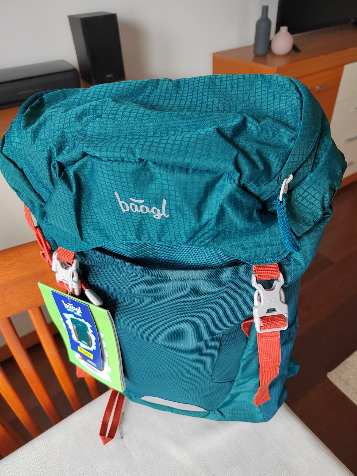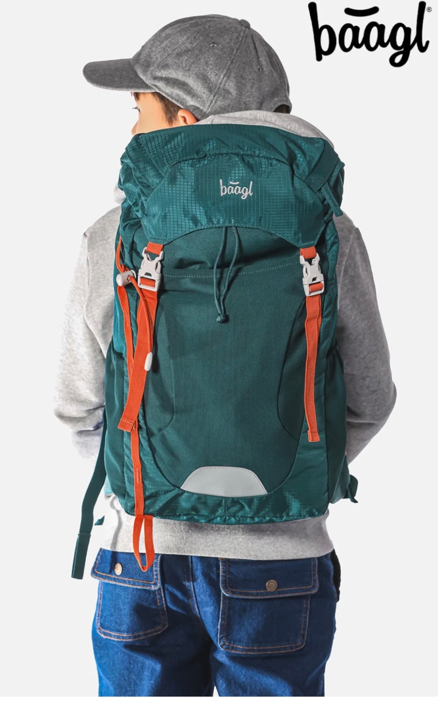 Batoh Tracker Verde. Zelený outdoorový batoh Tracker Verde s logom BAAGL a oranžovými popruhmi je ideálný pre deti od 3. triedy ZŠ.