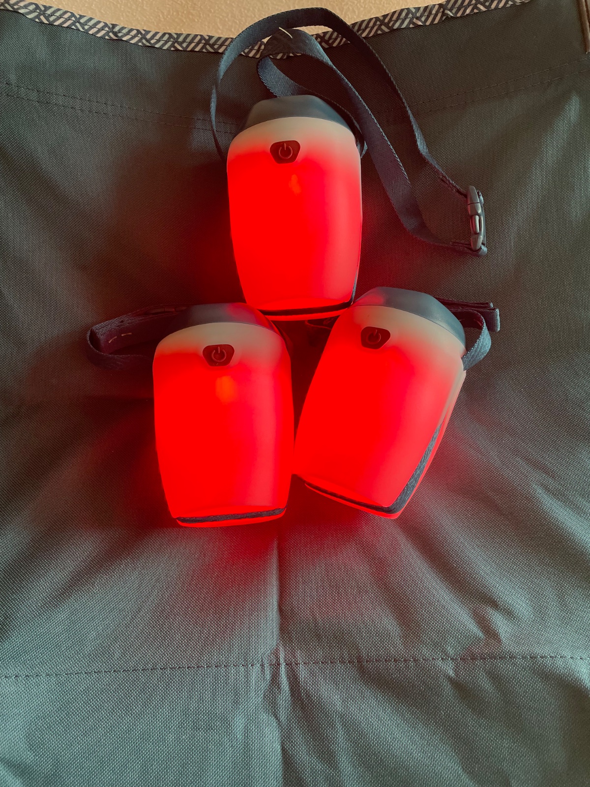 Kempovacie svietidlo použité 2 dni an stanovačke. Svietidlo má tri režimy svietenia. Svietidlo je odolné voči dažďu, je vysoké 12 cm s priemerom 8 cm. Má popruh na zavesenie.