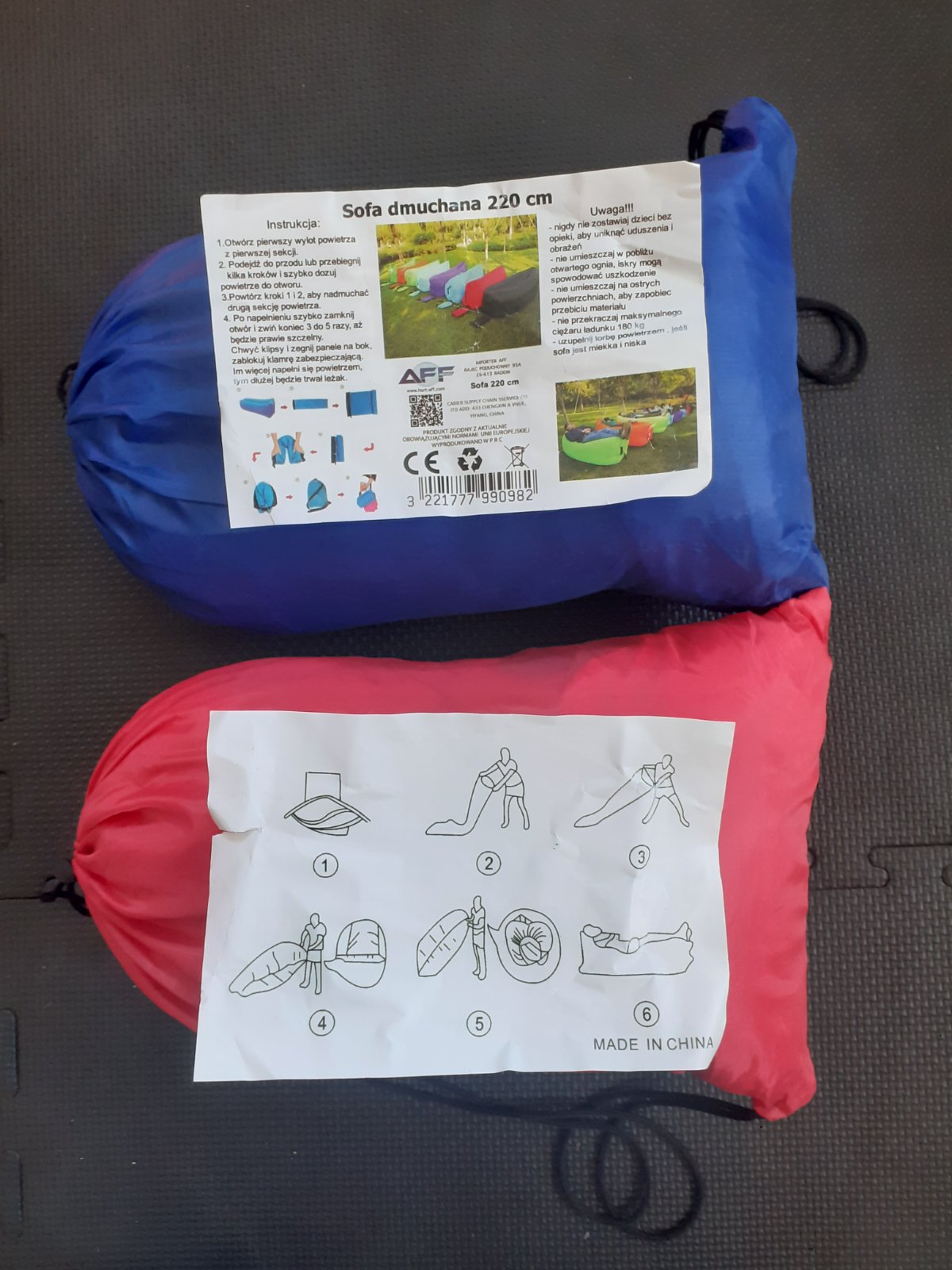 Predám dva dvojvrstvové nafukovacie vaky - Lazy Bag - v červenej a modrej farbe, málo používané. Výborné na odpočinok a relax na záhrade, na chate, na túre, na dovolenke na pláži pri mori, pri vode / jazere, na festivale, na stanovačke, pri kempovaní a pod. Je veľmi skladný a ľahko sa zmestí do kufra alebo cestovnej tašky. Vak slúži ako matrac, posteľ či nafukovačka do vody. Nafukuje sa pomocou "lapania vzduchu" rýchlymi švihanými pohybmi najprv do jednej komory a potom do druhej. Zmestí sa do neho aj dlhý človek. Materiál nepremokavý polyester sa ľahko zvonka umyje mydlovou vodou, zvnútra igelit. Dĺžka 220 cm a maximálne zaťaženie 180 kg.