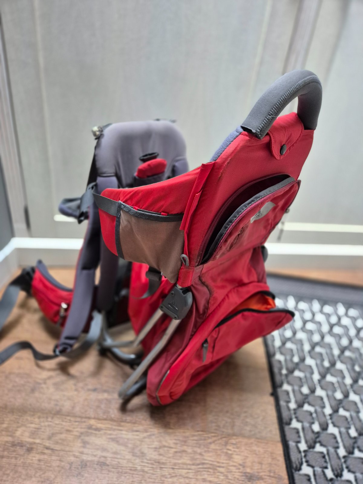 Málo používaný detský nosič, vhodný na prechádzky, aj túry. Nosnosť cca 18 kg dieťa, veľa vreciek na drobnosti.