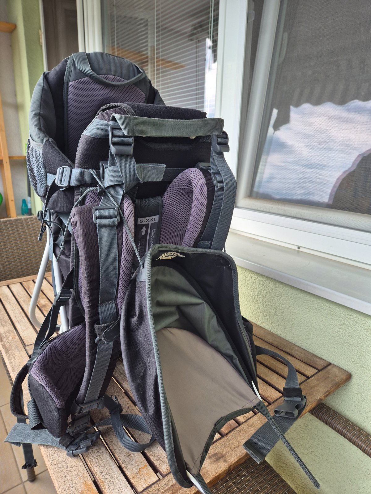 stúpačky- výškovo nastaviteľné s aretavou pätou, podporujúce správne prekrvenie končatín a zaisťujúce stabilitu noseného dieťaťa