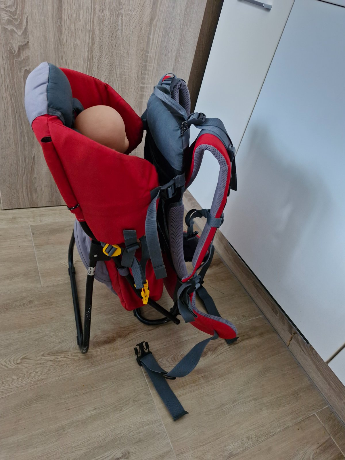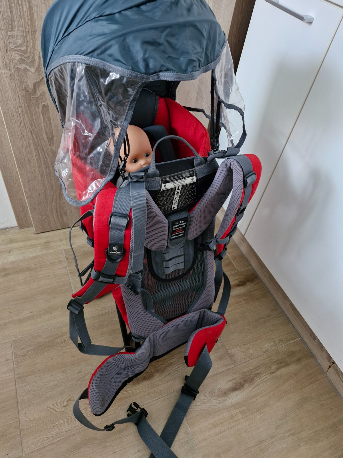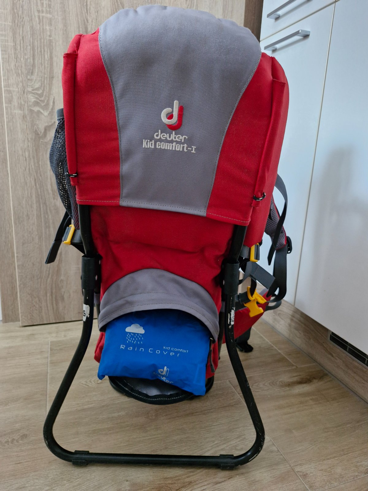 Predám turistický nosič Deuter Kid Comfort 1 po dvoch deťoch relatívne často používaný. Má slnečnú clonu, striešku do dažďa a pršiplášť. Tyče, ktoré držia dieťatko na zemi sú trochu obité, ale na funkčnosti to neuberá. Nosič nie je nikde vydratý a je vytepovaný.