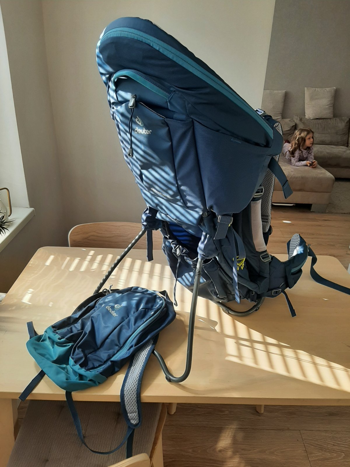 Predám zachovalý detský turistický nosič Zopa. Ľahký, skladací, samostatne stojací, s odnímateľným ruksakom a nosnosťou do 15kg.