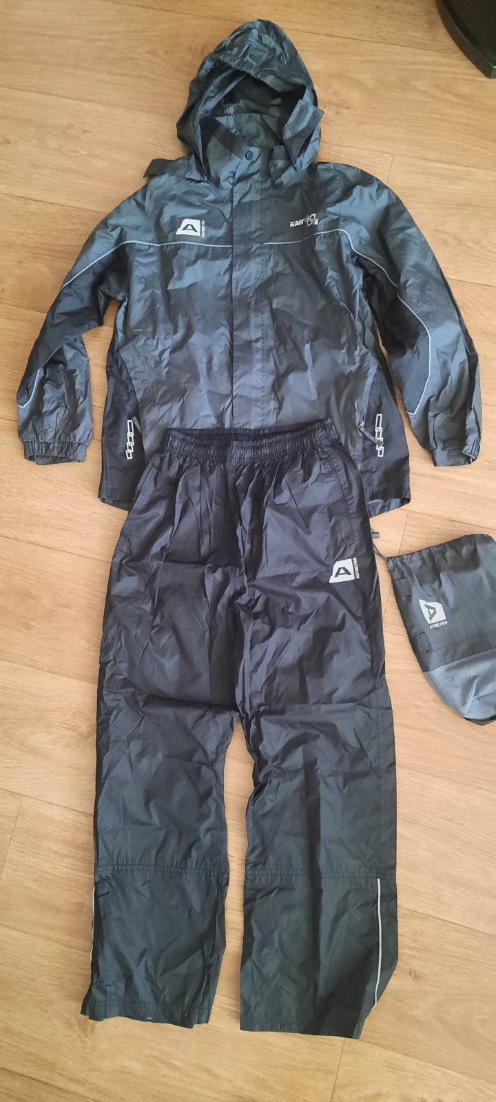 Detská nepremokavá súprava oblečenia na turistiku. Dá sa celá poskladať do vrecúška. Veľkosť 152. Farby nevyblednuté, bez poškodení v super stave.