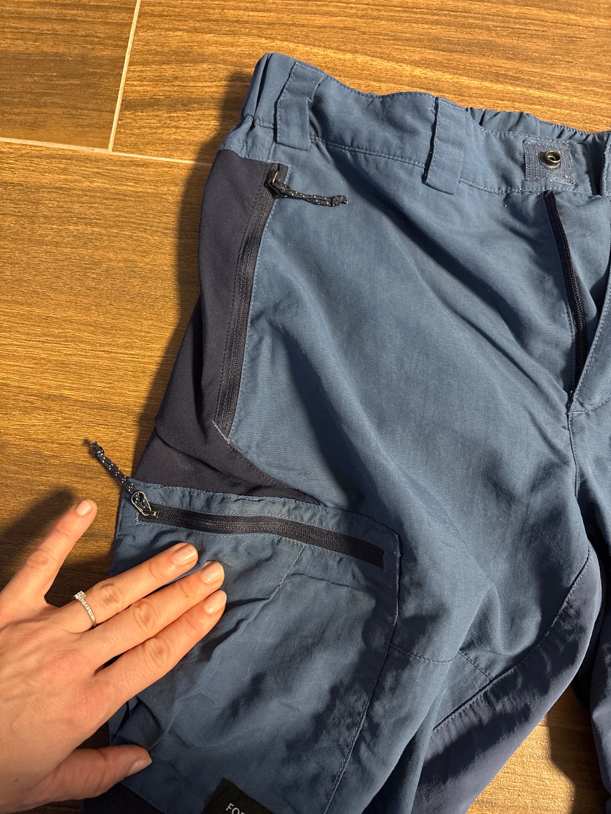 Predám turisticke nohavice (Decathlon), vo vybornom stave, kombinacia ocelovo modrej a tmavomodrej, vrecka na zips vsetky, stahovanie dolu, husty a vyborne pružny material, putka na opasok, fakt su skvele. Velkost M standard, rozmery vo foto