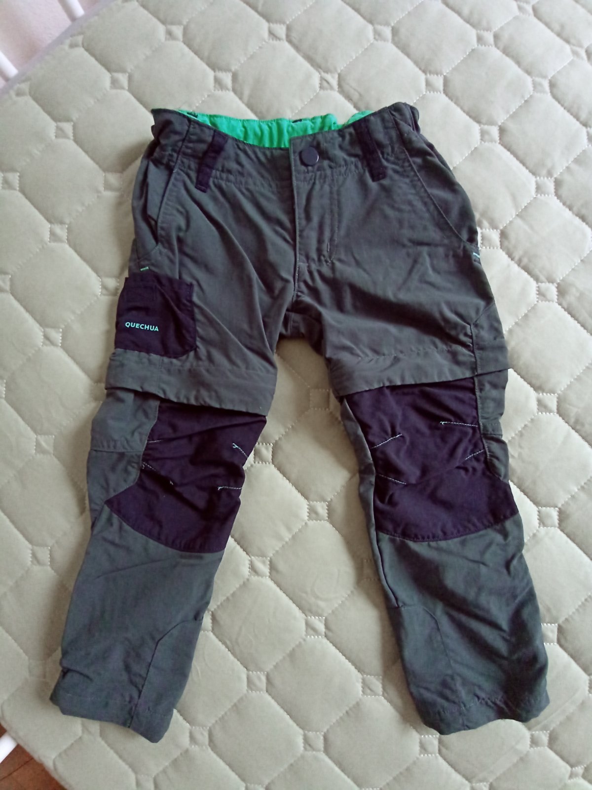 Nohavice sú vo veľmi dobrom stave, menej nosené. Odzipsovateľné na šortky. Sú vhodné na jar, leto, jeseň. Ideálne na dni, kedy je ráno ešte chladnejšie, no poobede už horúco. Sú značky Quechua z Decathlonu (veľ. 96-102). Zapínanie na zips a gombík, pás sa dá prispôsobiť gombíkmi s gumičkou.