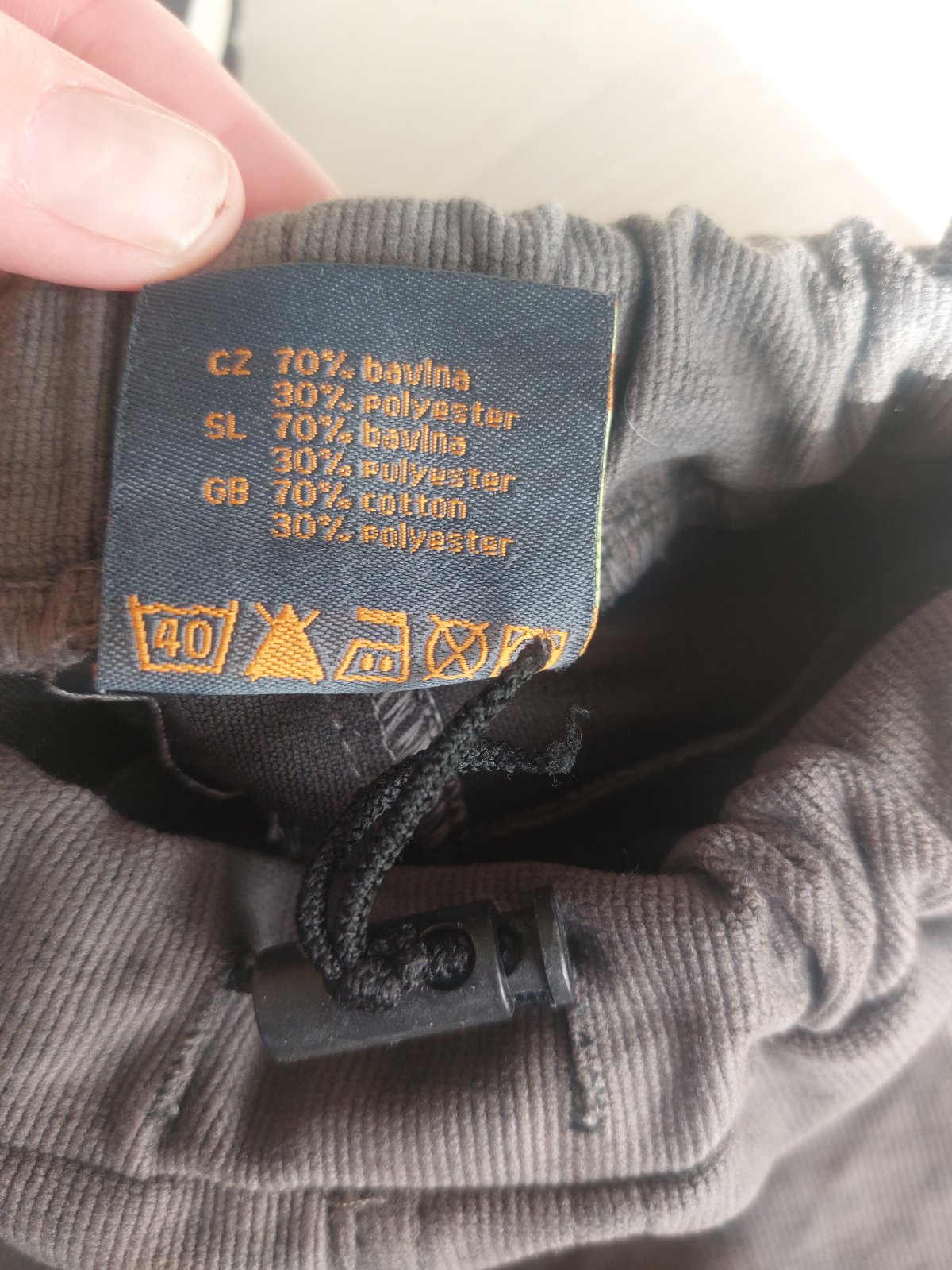 V páse gumička, zadné vrecko