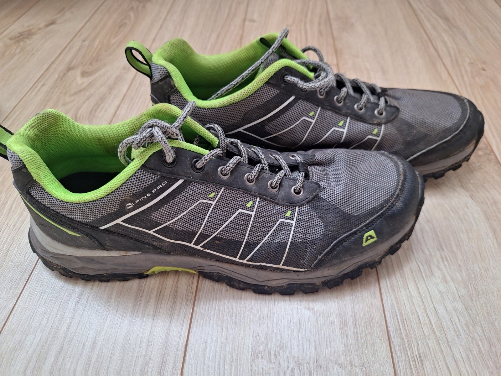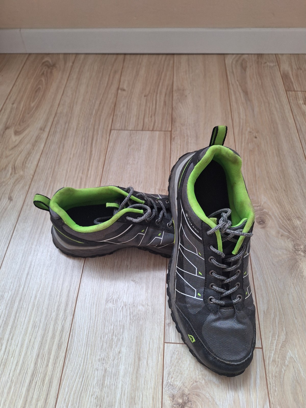 Tmavošedé trekingové topánky, značka treZeta, veľkosť 9,5 (43). Vodeodolné, vnútorná dĺžka je 28,5 cm. Podrážka Vibram. Jedenkrát obuté, vyčistené, nepoškodené, top stav. Možný osobný odber Ilava a...