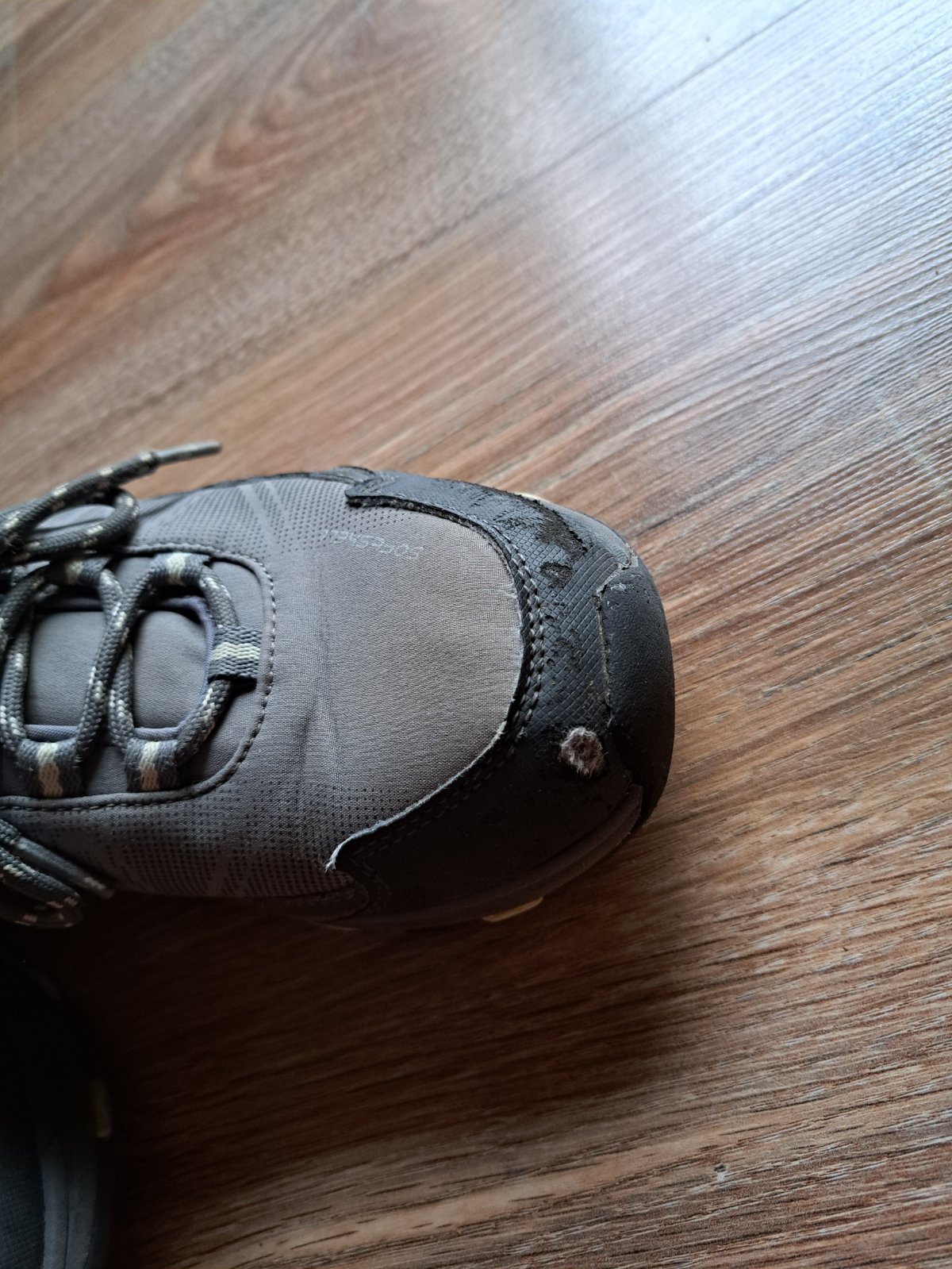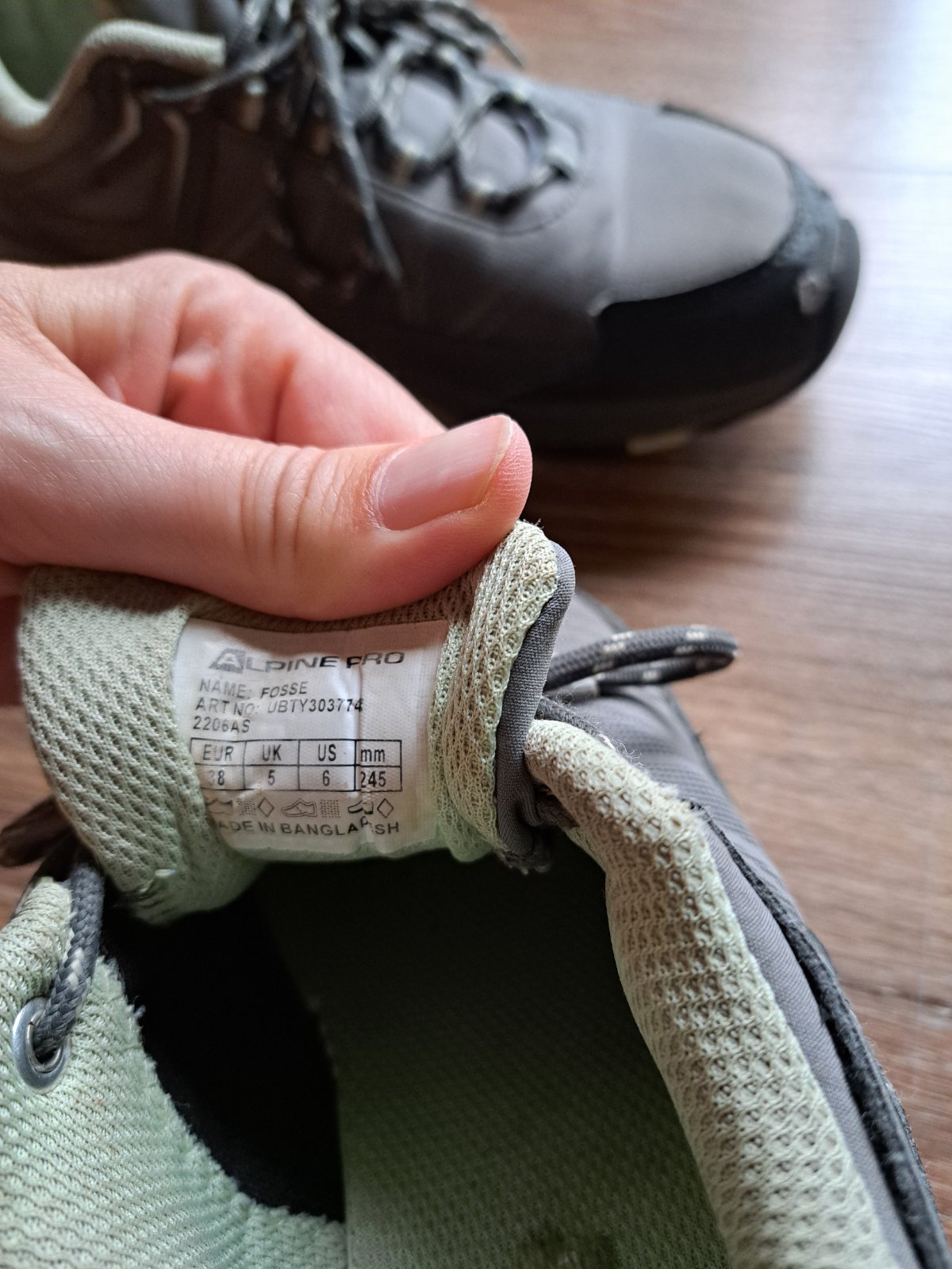 Turistické topánky kupované pre syna, pôvodne dámske, ale farba je sivá so zelenou. Podrážka je v poriadku, ale predok má známky nosenia, viď fotky.