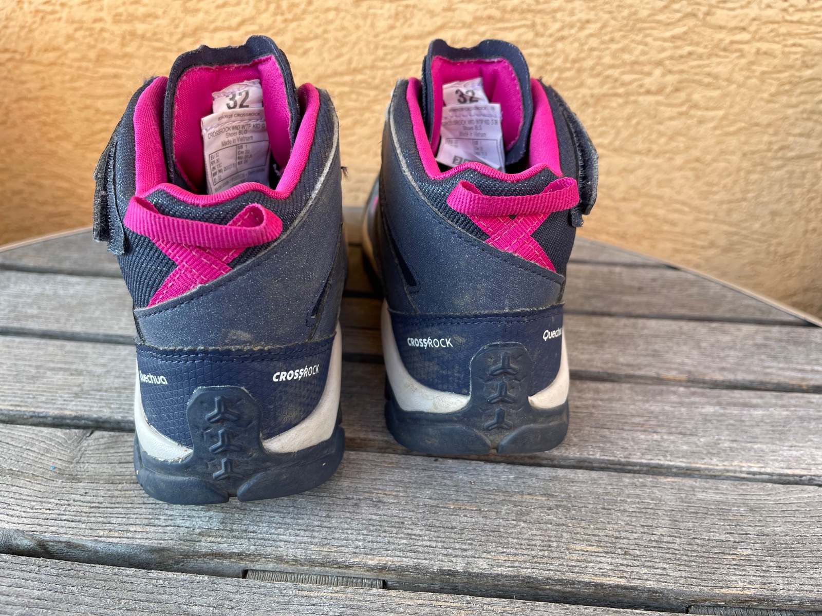 Turisticke topanky zn. Crossroads, velkost 32, dlzka stielky na foto. Nosene jednu sezonu na turistiku, bezne znamky pouzivania. Suche zipsy ciste, drzia. Pata nezosuchana, nezoslapana. Spicky neok...