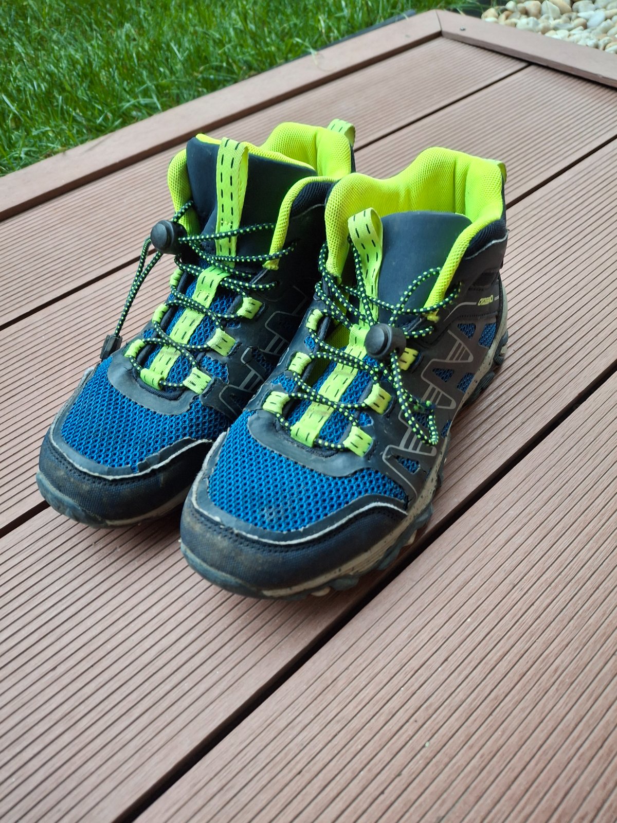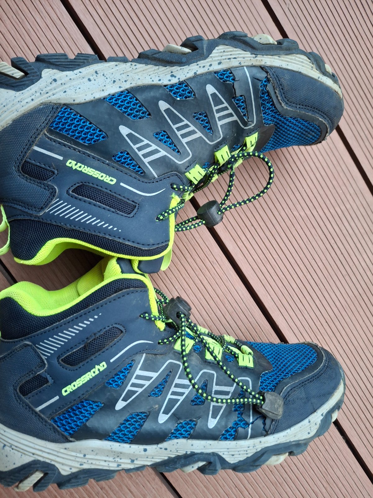 Turistické topánky, pripadne jesenne jarne topánky . Syn ich nosil rad, hlavne ze nemusel viazať šnúrky,preňho boli veľmi pohodlné. Ešte ich niekto vynosi. Navrchu uz miestami popraskany ten gumený poťah vidiet na foto, ale neovplyvňuje to funkčnosť topánky. Značka Crossroad, kupované v Sportissime. Veľkosť 38, vnútorná dĺžka je 25,5 cm. Stav zodpovedá fotkm, este su plne využiteľné.