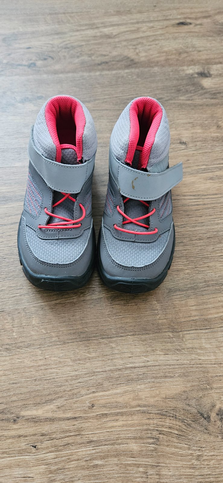 Turistické topánky minimálne nosené, kupované v decathlone. Top stav,ako nove. Jediná chybička je fľak asi od lepidlá na tej klapke na suchý zips. Pri kúpe sme si nevšimli a uz sa nam to potom nechcelo ist meniť.