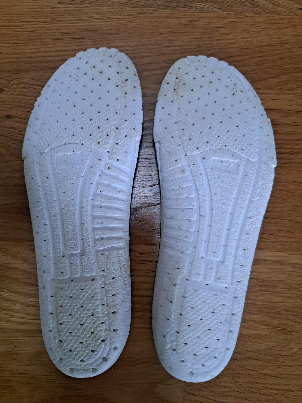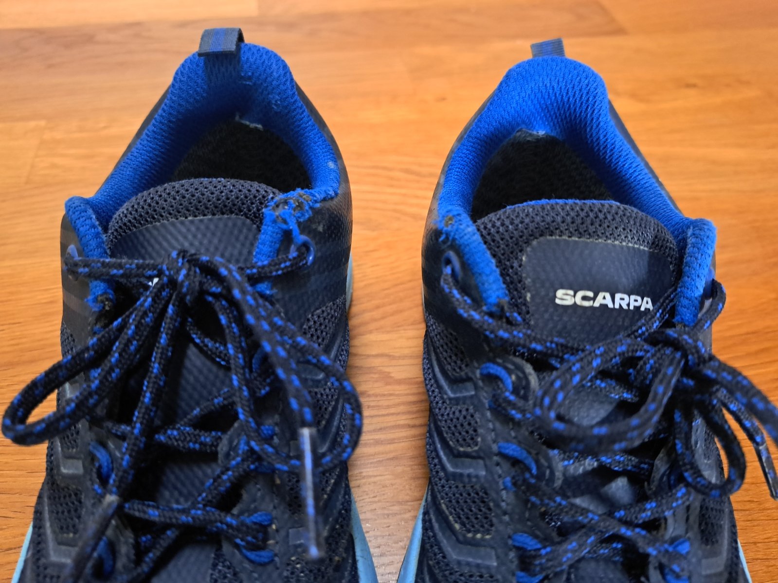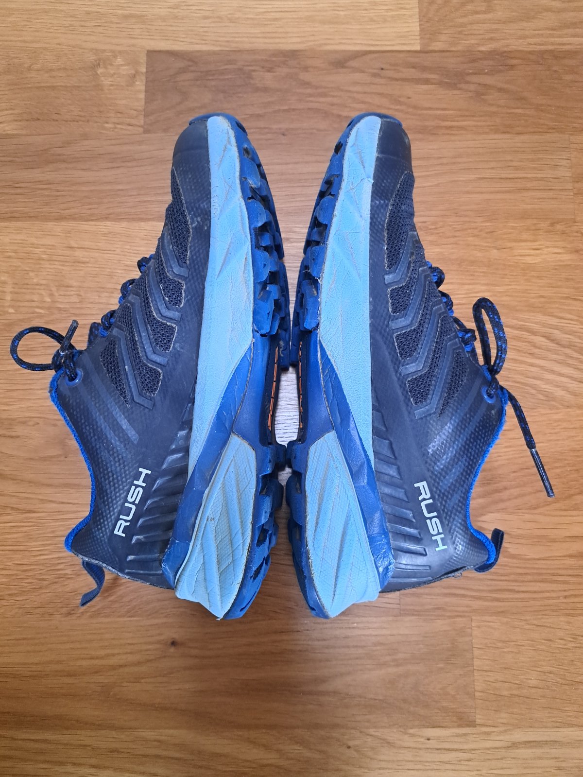 Vhodné na dorazenie - šnúrky v podstate nové, nosili sme iné. Podrážka ešte vo veľmi dobrom stave, nezchodená, v teréne dobre drží. Aj na nohe držia pevne, nie sú vyčaptané. Ale boli nosené často, takže majú rôzne poškodenia, šúchance a odreniny, vnútorná látka je miestami predretá.