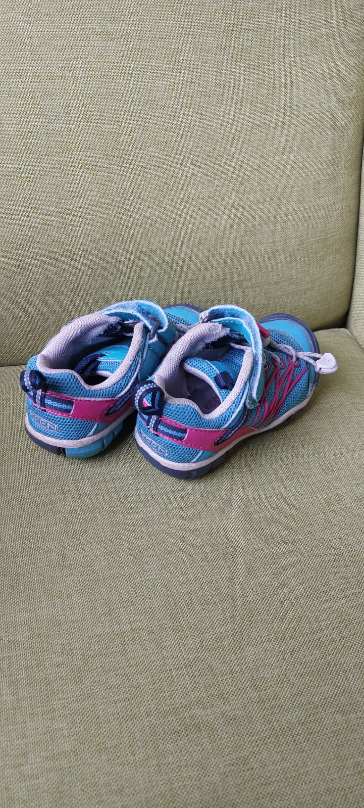 Topanky nosene, stale dobry stav, mala nedokonalost odfotena, topanky su velmi pohodlne, kupujeme uz tretie taketo. Nie je tam stitok velkosti ale mala by to byt 38, vnutorna dlzka 245 mm