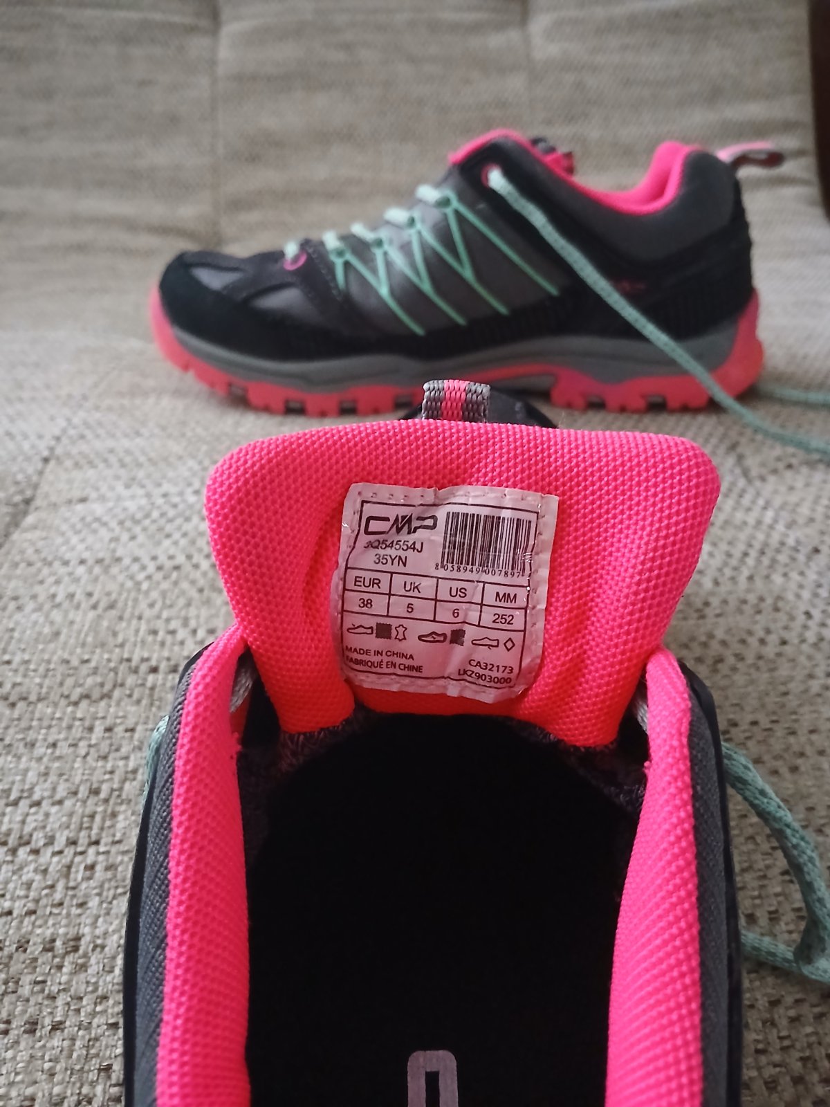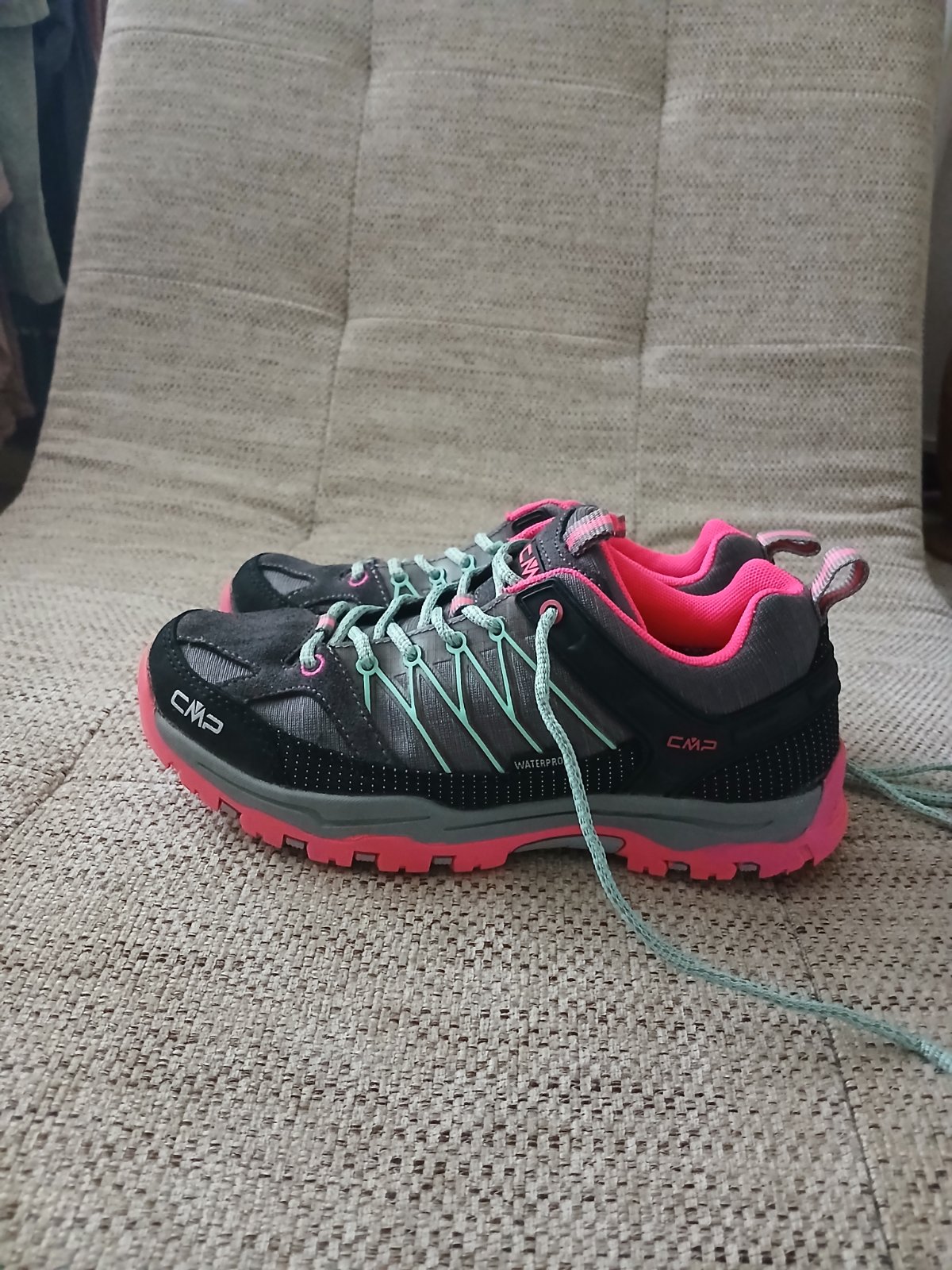 Turistické topánky sú málo používané majú tmavošedú farbu a ružovú podrážku . Velkost je dámska číslo 38.